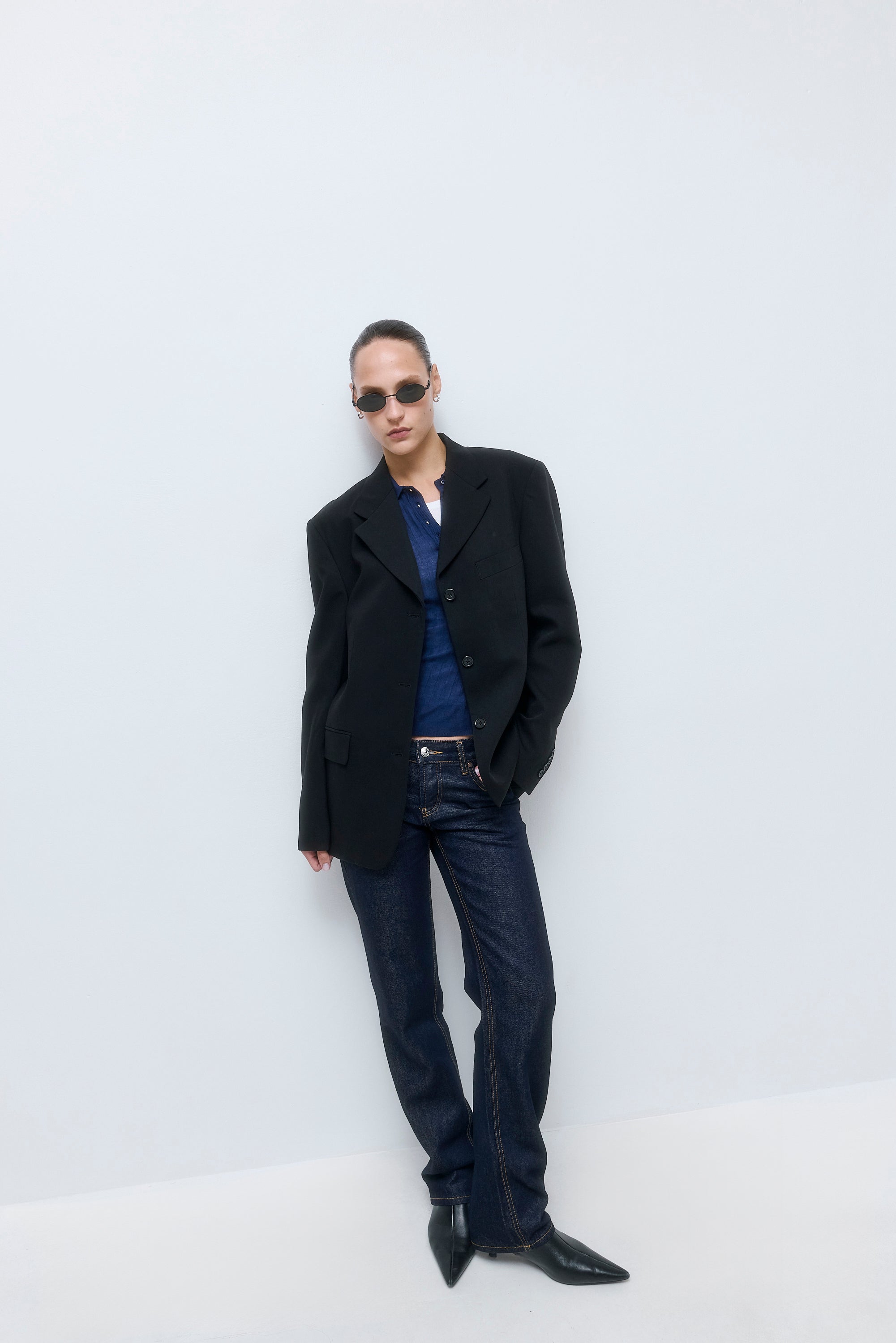 Welcoming new, timeless pieces to our iconic Daddy collection. A classic blazer. Oversized fit. Complete with a lapel collar. Featuring two front flap pockets. Tonal buttons with contrast trim edge. Tonal embroidered logo. Fully lined. Detailed with two inside pockets. Wear it with our new, stylish Slim Daddy Pants and timeless Yvon Shoulder Bag for a refined look.