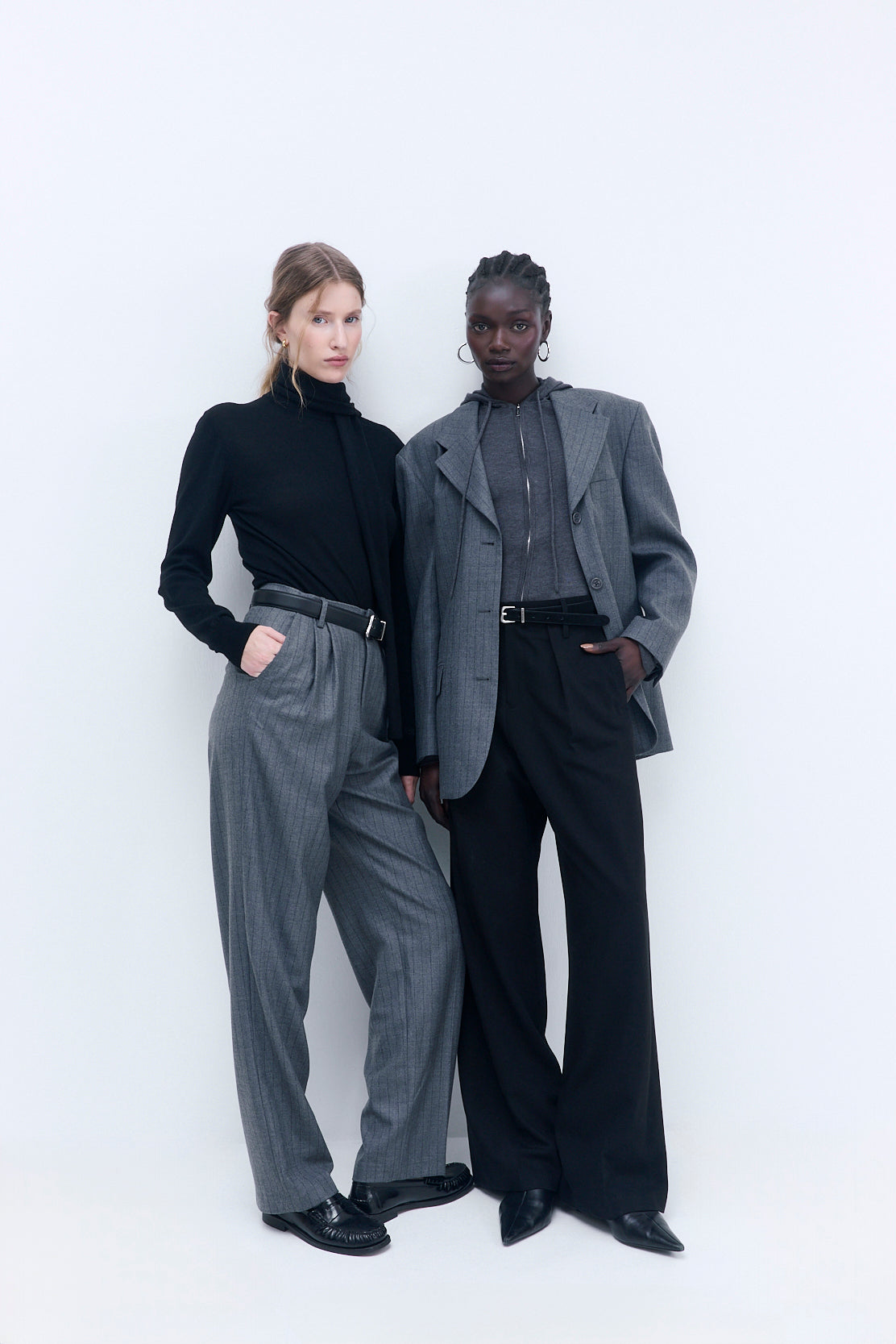The perfect winter essential. A lightweight crew neck. Fitted with subtle volume at the sleeves and hem for a modern silhouette. Finished with ribbed edges at the neckline, hems, and cuffs. Detailed with a tonal embroidered logo at the sleeve. Style it with our iconic Classic Oversized Daddy Blazer and Tapered Leg Daddy Pants for the ultimate monochromatic look.