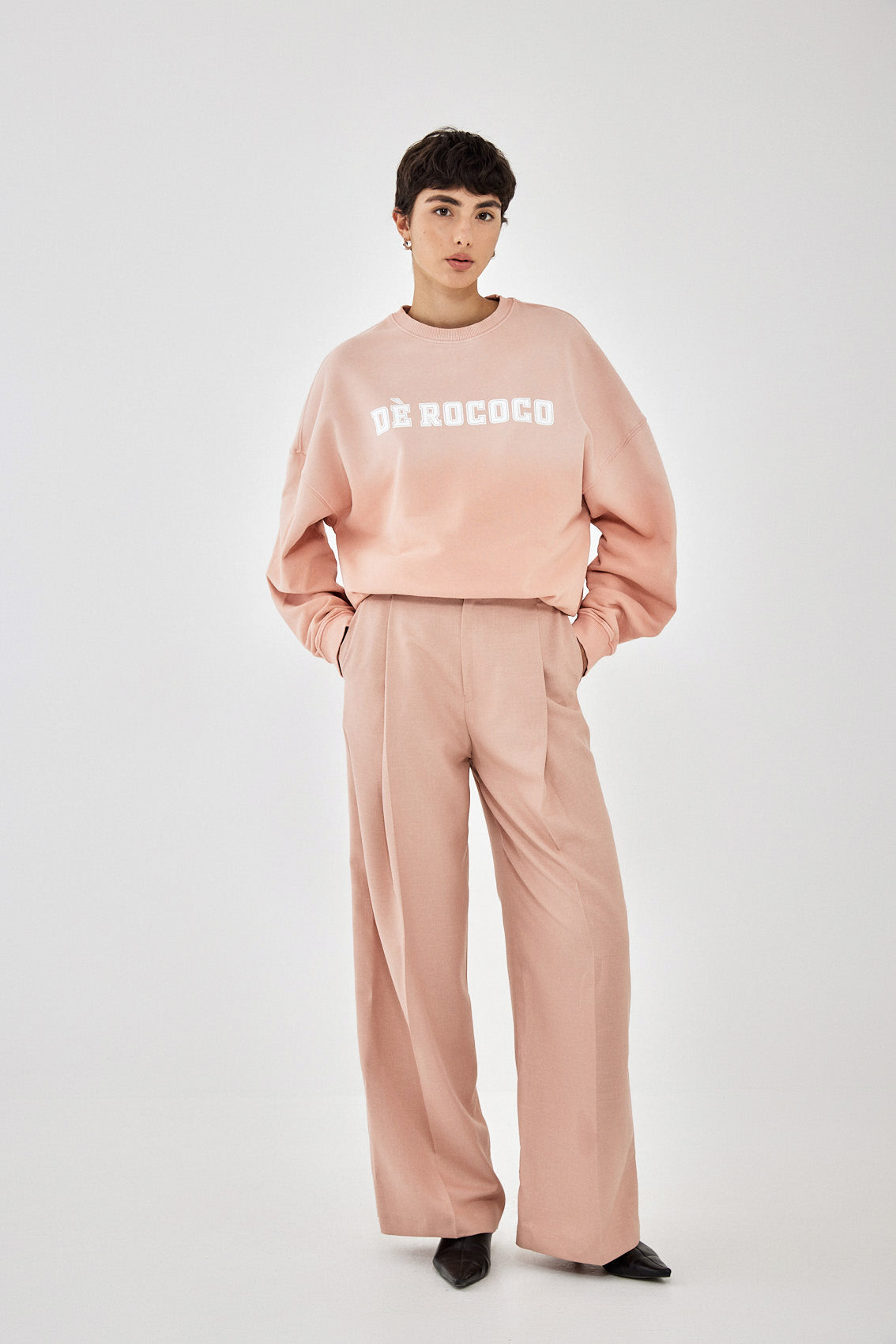 The perfect oversized sweatshirt. Featuring a handcrafted gradient effect. Crew neckline. Delicate balloon sleeves for a comfortable fit. Logo print on the front. Style it with your favorite pair of denim and a boot for the ultimate cozy yet chic look.