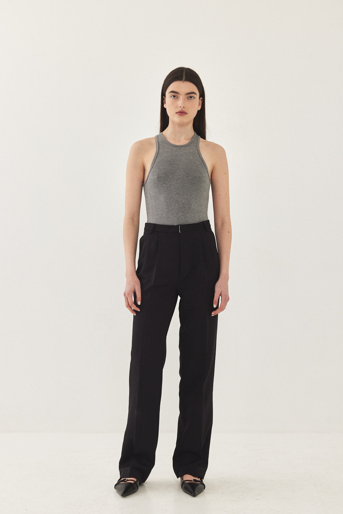 Open back ribbed bodysuit featuring a halter neckline. Perfect for layering throughout the seasons. The perfect day to night top. For the day, style it with the matching leggings and a pair of flats. For the night, elevate your look and add a pair of heels and your favorite purse for a stylish going out look.