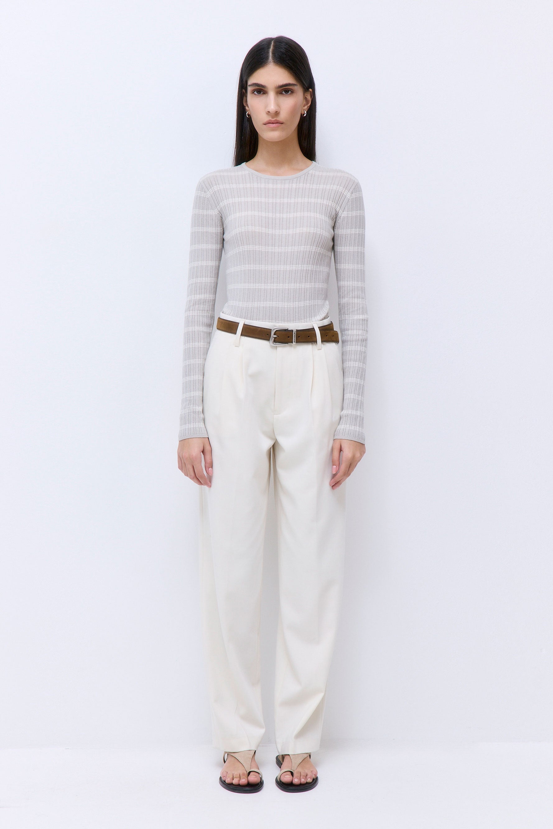Our new ribbed long sleeved top is the perfect must have this season. Ultra-soft lightweight ribbed fabric. Ribbed finish. Features a crew neckline. Embossed silicone logo on the neckline's back. Fitted silhouette. Style it with our effortless Micro Mini Skirt and our classic Chino Cap for the ultimate summer-to-fall look.