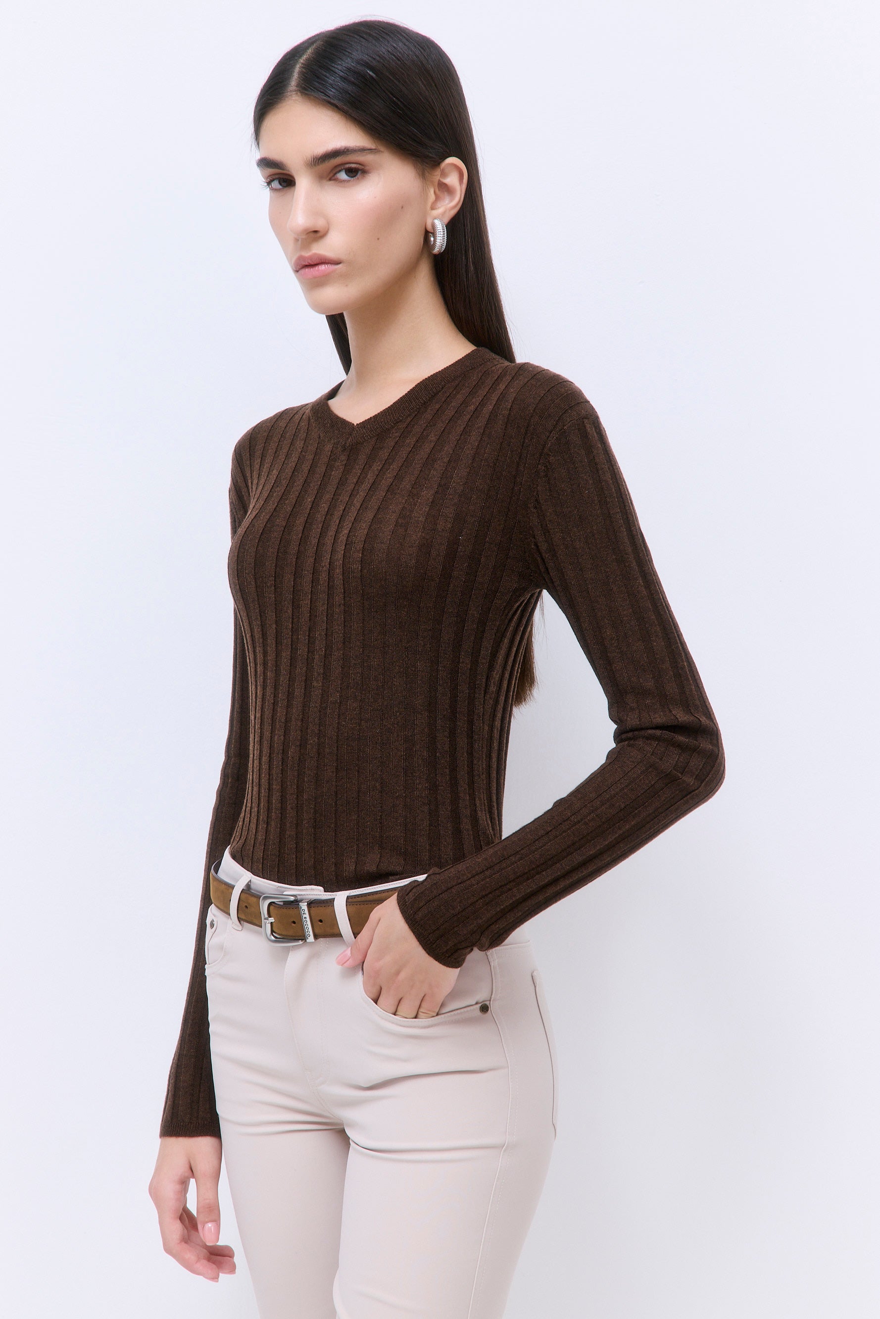 Soft Ribbed V Neck