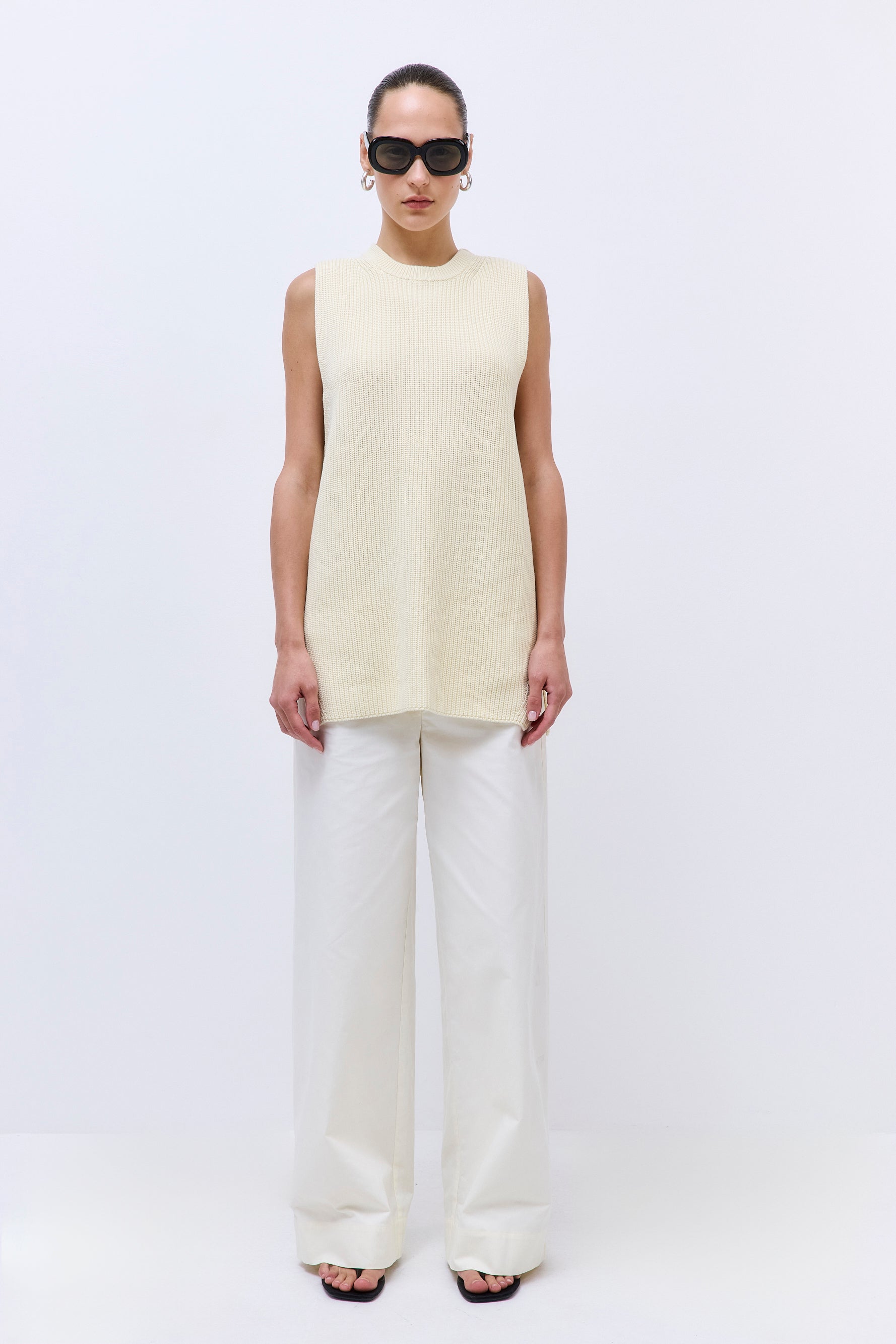 The layering piece you’ll reach for again and again. Oversized crewneck. Detailed with side slits. Clean finishes at the hem and arm openings. Designed with a ribbed neckline, with subtle knit detailing along the shoulders. Slightly shorter than a tunic, longer than a shirt. Style it with our essential Stretchy Bootcut Pants and stylish Soft Ribbed Crewneck for a refined layered look.