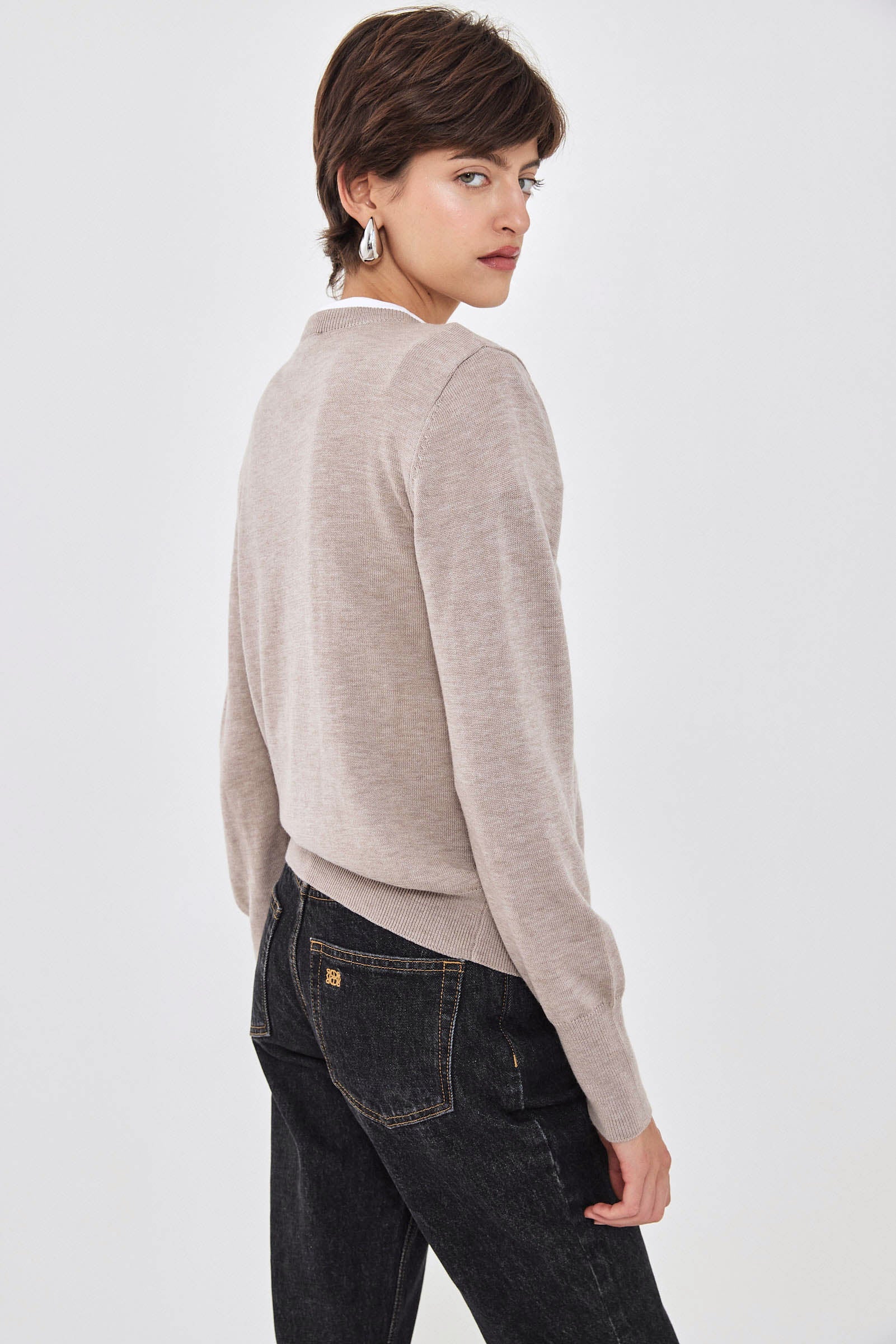 Your go to piece for effortless layering this season. Features a crew neckline. Relaxed fit. Long sleeved. Ribbed finish. Fitted silhouette. Tortoise logo engraved buttoned closure. Delicate logo embroidered on the sleeve, just above the cuff. Style it with our super wide daddy pants, our croco belt and our beautiful vegan leather bomber to seal this gorgeous look.