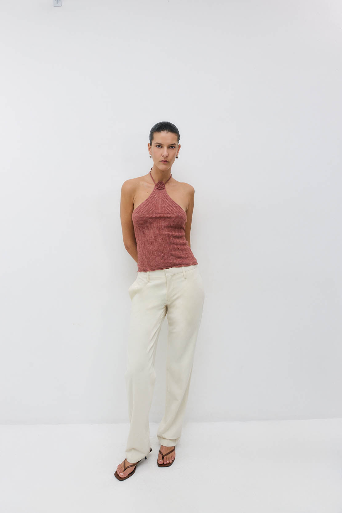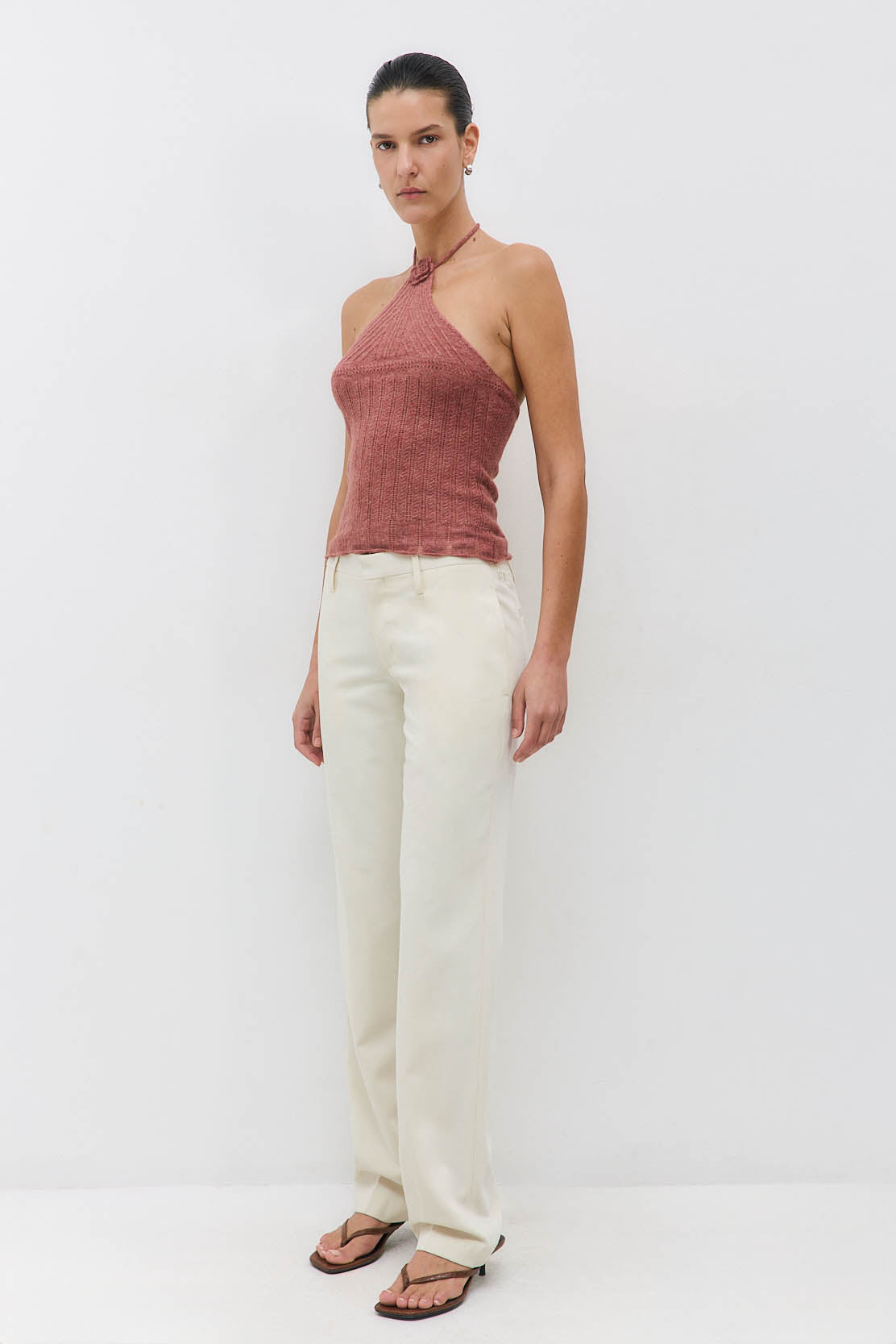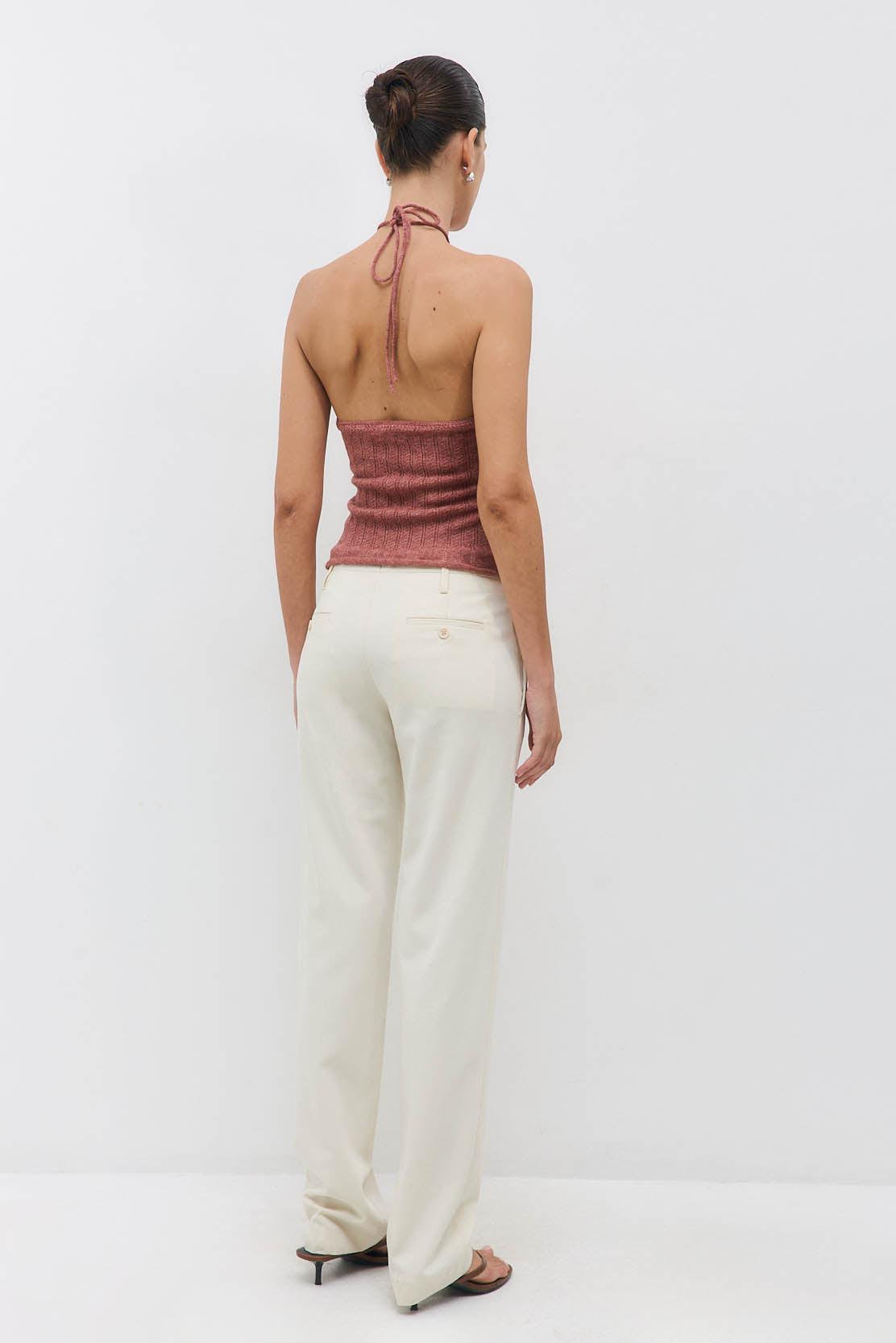 Welcoming new, timeless pieces to our iconic Daddy collection. The ultimate day-to-night pant. Mid waist, slim fit pants. Full length. Two side pockets. Zipper closure with inner hook. Half-lined. Tonal embroidered logo on the back. Includes back pockets featuring tonal buttons. Style it with our luscious Classic Long Sleeve T Shirt and our sleek new Double Breasted Daddy Blazer for a sophisticated, yet comfortable look.