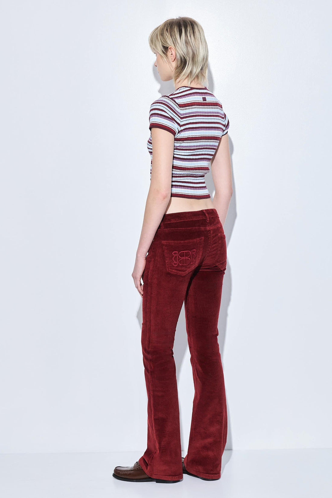Our new corduroy bootcut pants was designed to elevate all of your outfits this season. Low rise. Bootcut fit. Engraved logo buttoned closure. Two front and back pockets. Tonal embroidered logo on the back pocket. Clean finish. Slightly stretchy. Delicate belt loops. Style it with our matching corduroy jacket, a classic baby tee and a pair of our oval sunnies or a cool everyday look.