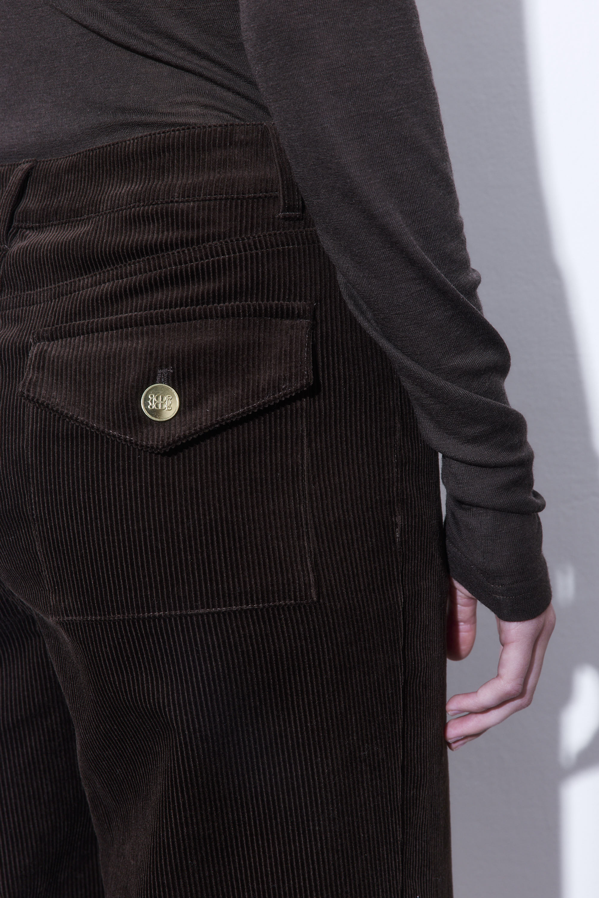 Crafted to feel as good as it looks. Wide leg corduroy pants. Mid rise silhouette. Classic front pockets and back flap patch pockets. Detailed with gold embossed buttons. Style it with our matching Corduroy Jacket and classic Lounge T Shirt for a clean, polished look.