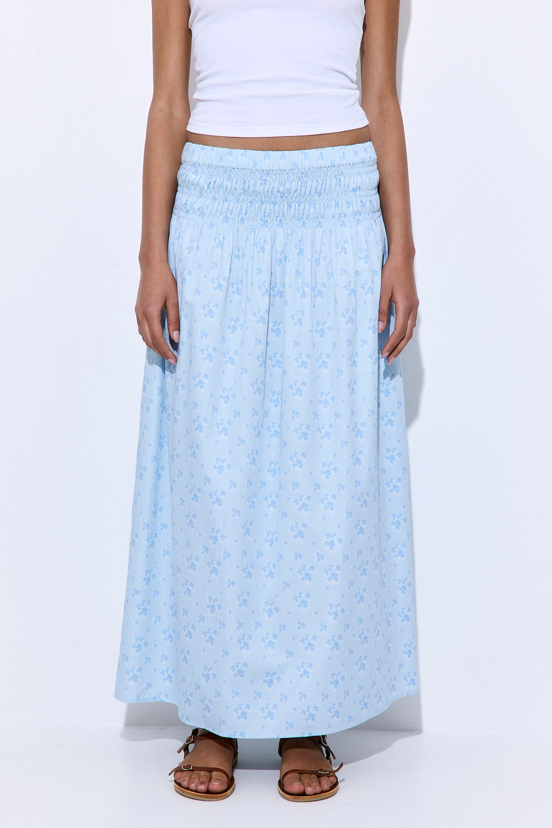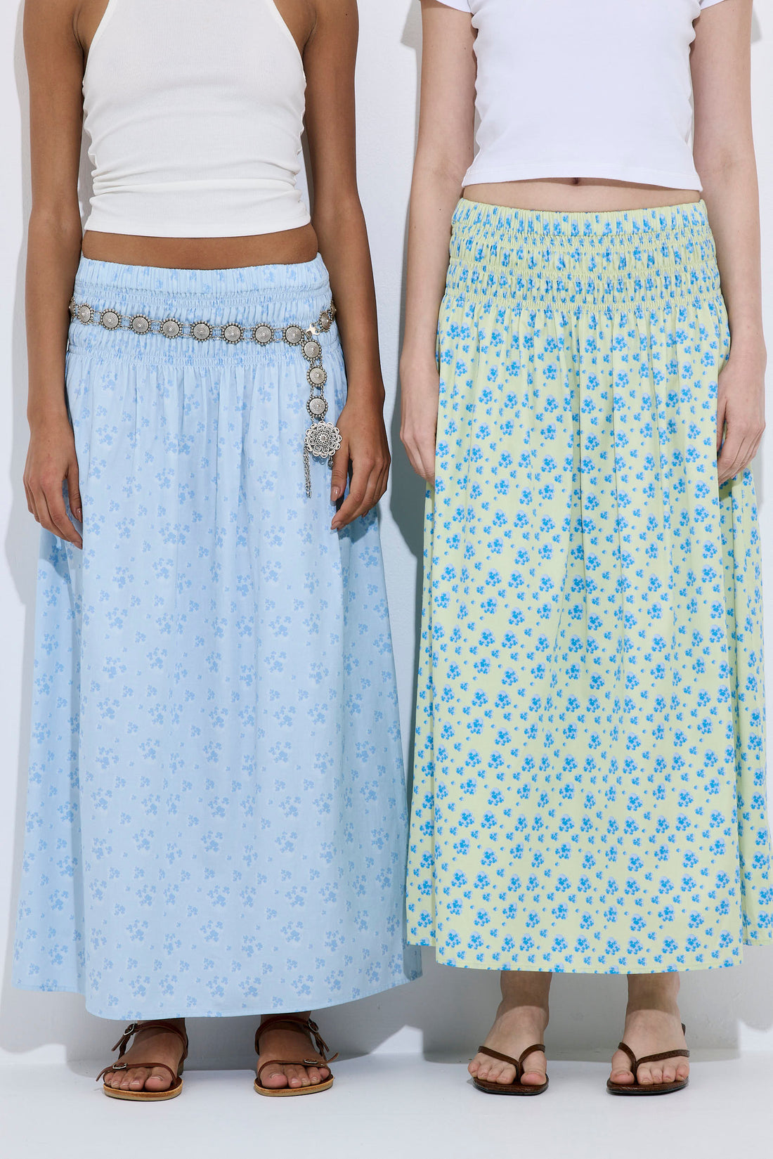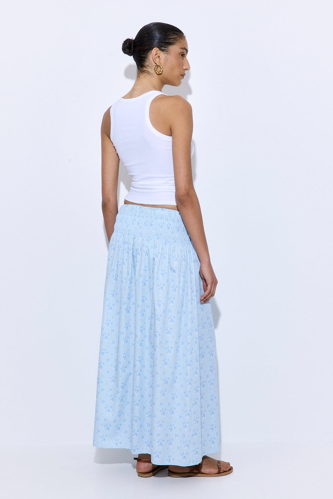 Our new shirred waist maxi skirt is the perfect blend of comfort and elegance. Designed with a soft, voluminous silhouette for effortless movement. Made from lightweight, breathable cotton for an airy feel. Featuring a wide, elasticated smocked waistband for a secure and flexible fit. PAir it with our new buckled tank top and a pair of our oval sunnies for a cool and effortless look.