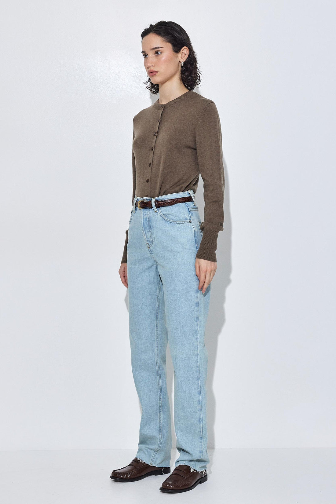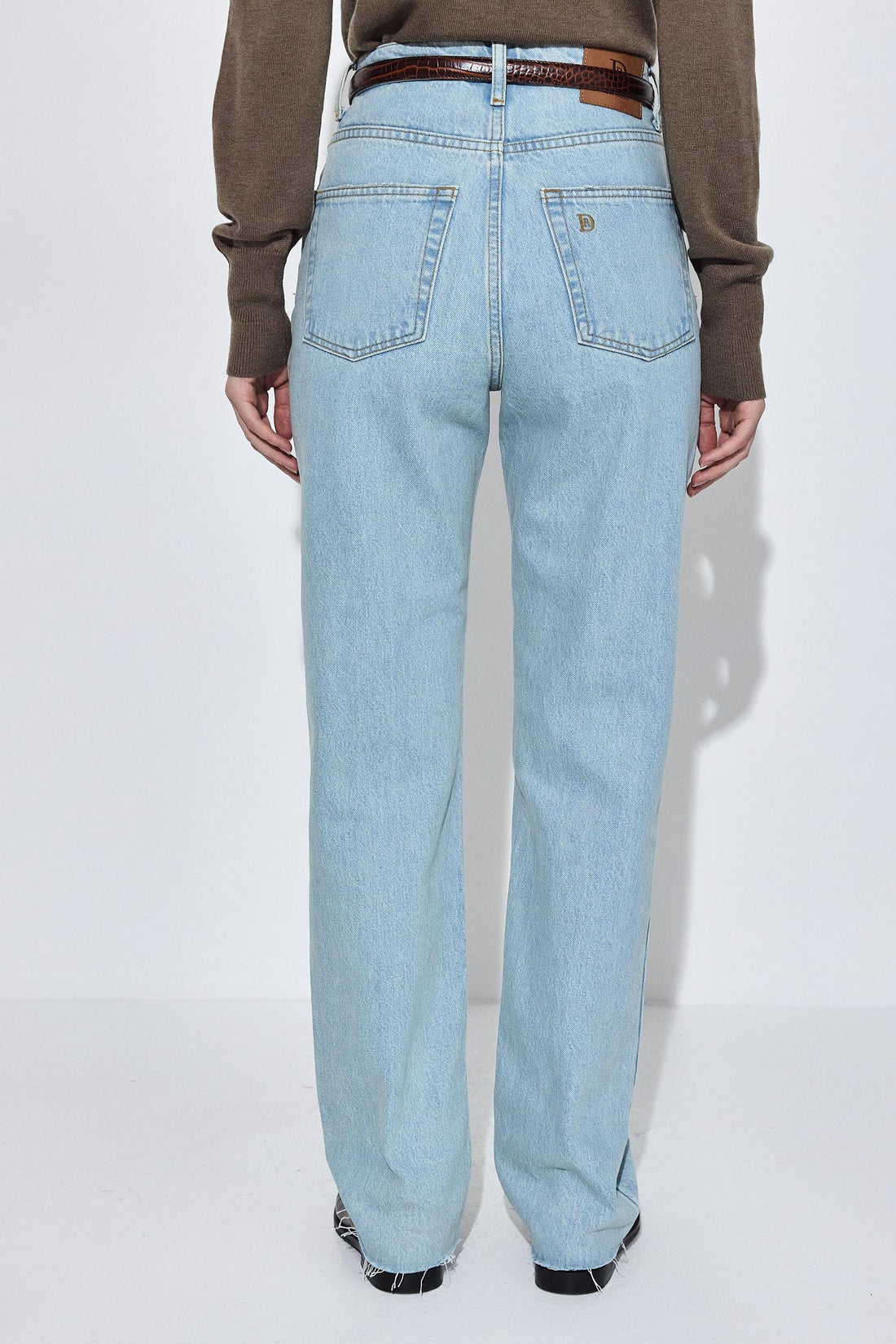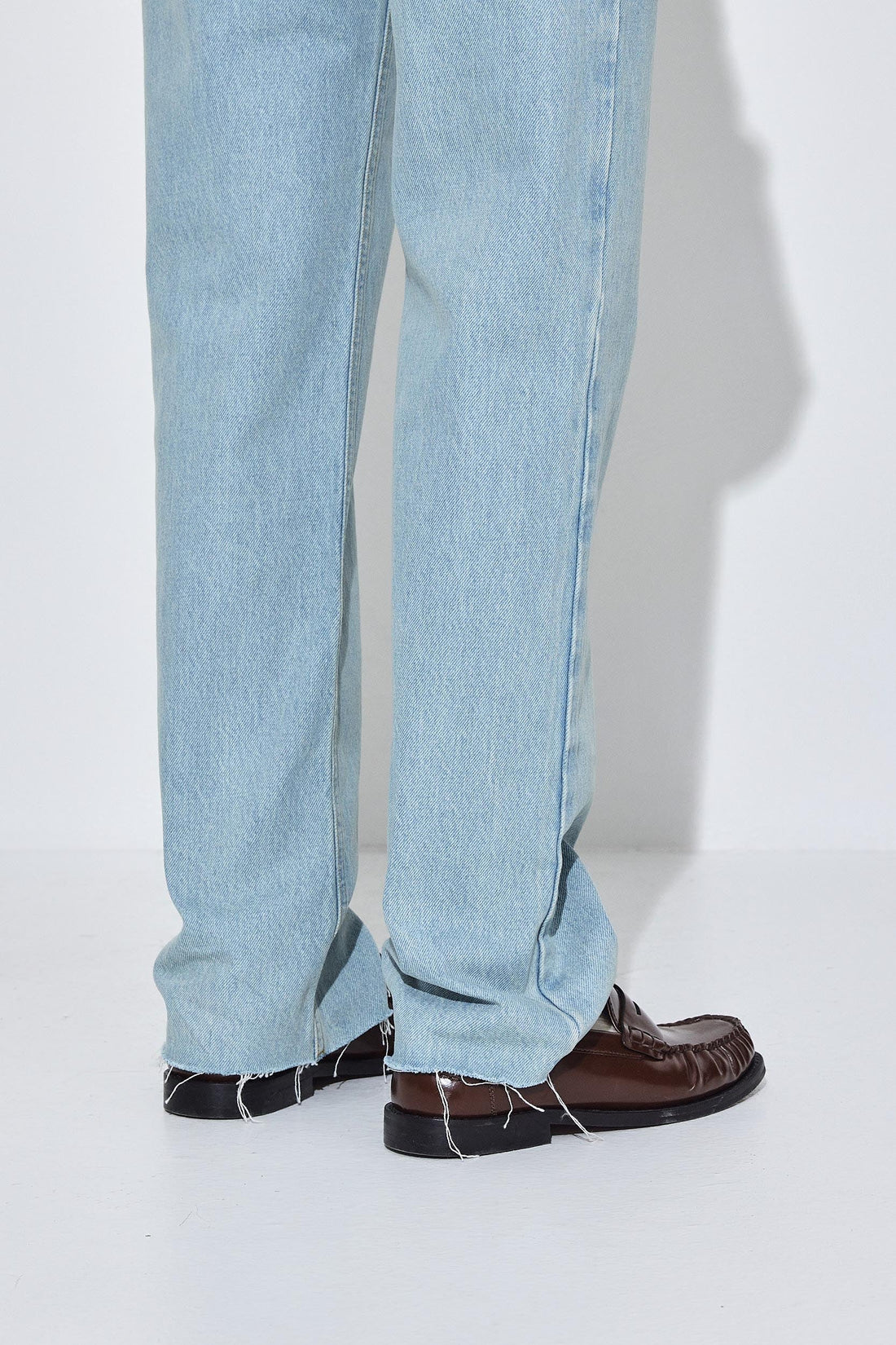 Our No.6 denim is a high waisted full length fit. An essential addition to your wardrobe. Front buttoned closure. Raw cut hemline. Features a logo detail embroidered at the back pocket. Style it with your favorite basic top and a pair of slides for an effortless everyday look.