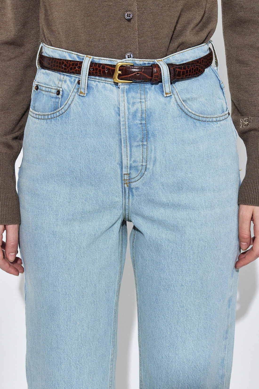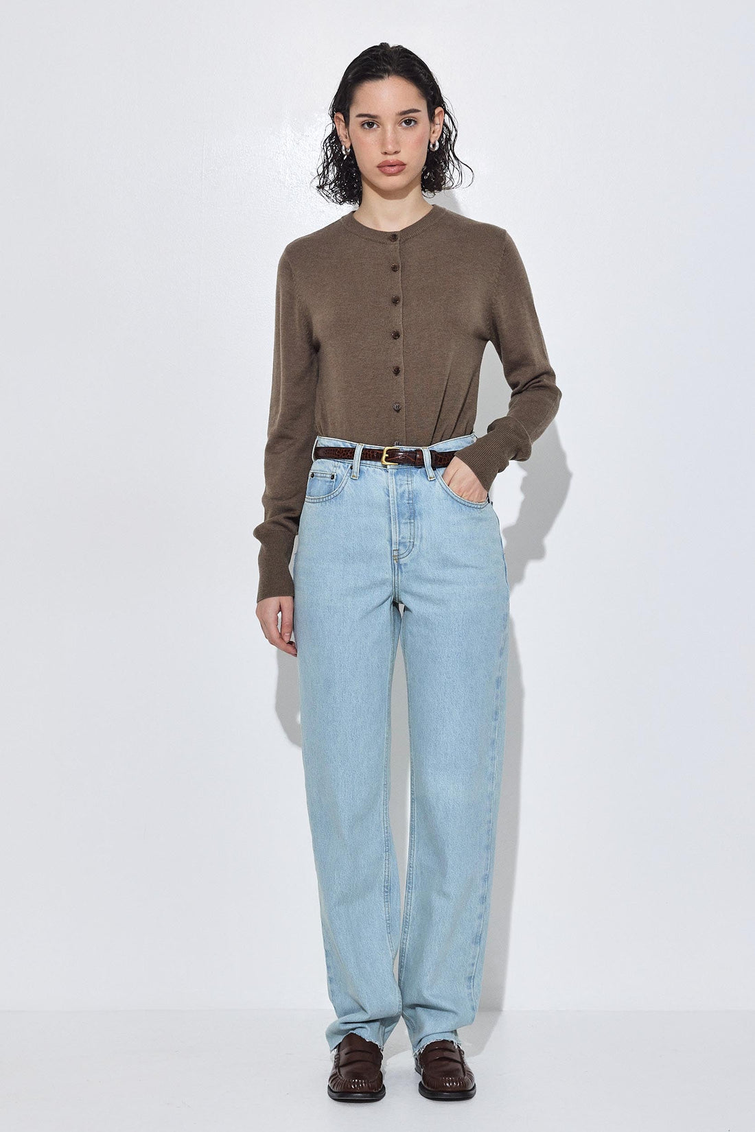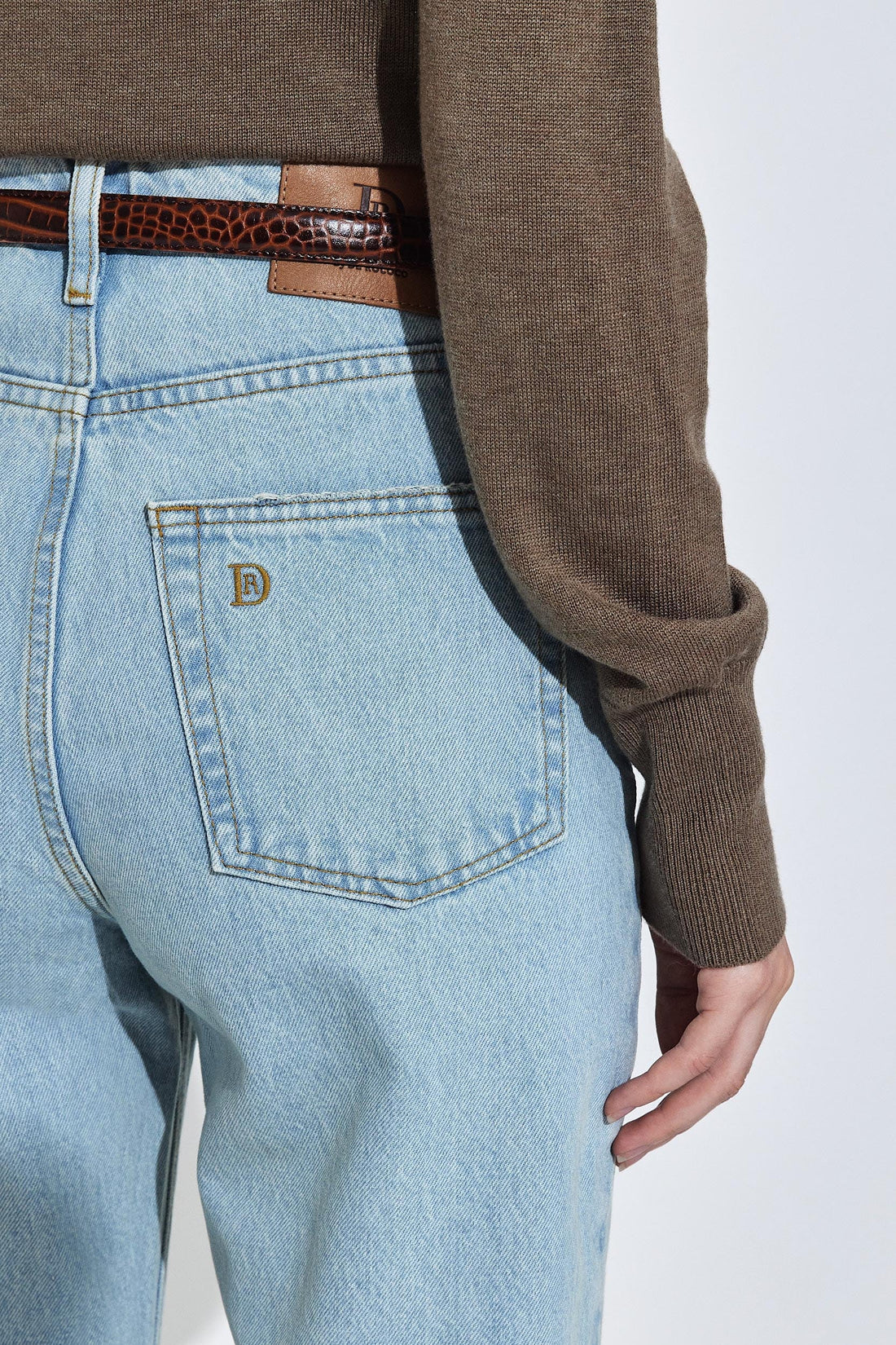 Our No.6 denim is a high waisted full length fit. An essential addition to your wardrobe. Front buttoned closure. Raw cut hemline. Features a logo detail embroidered at the back pocket. Style it with your favorite basic top and a pair of slides for an effortless everyday look.