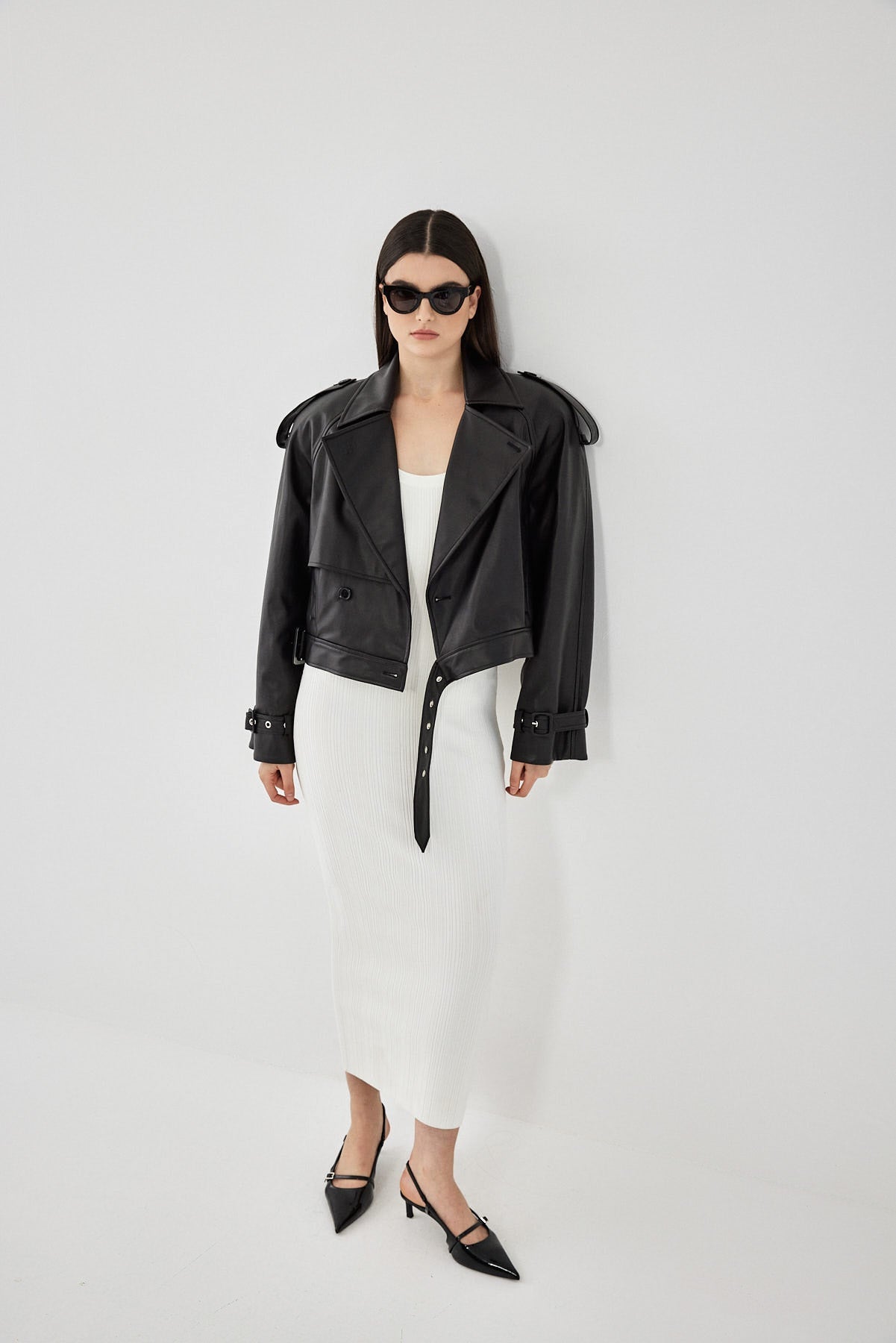 The perfect dress for transition season. Fully fashioned ribbed fabric. Sleeveless. Round neck cleavage. Body hugging fabric with an ultra flattering silhouette. Style it with your favorite pair of slides and a clutch for the ultimate day to night look.