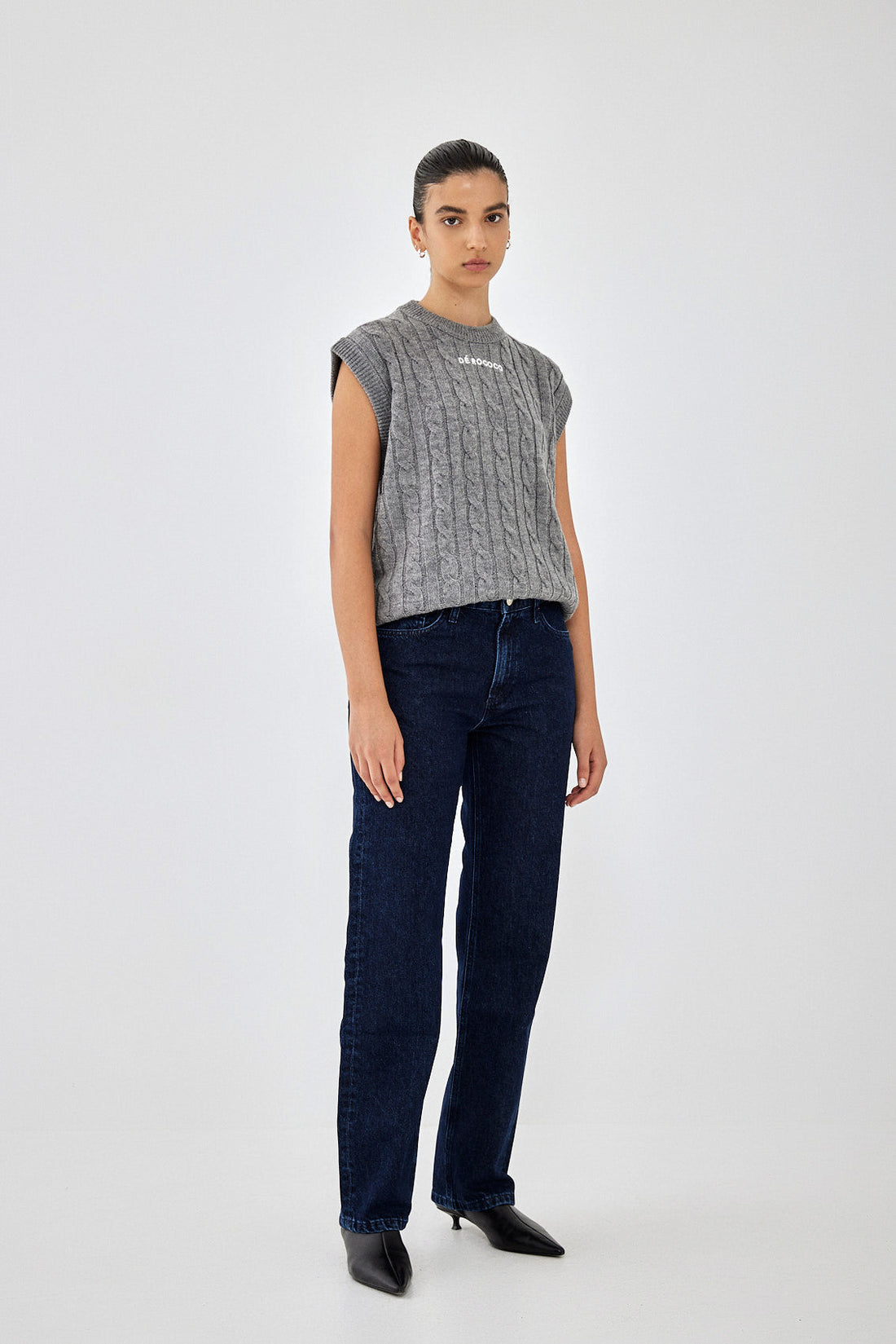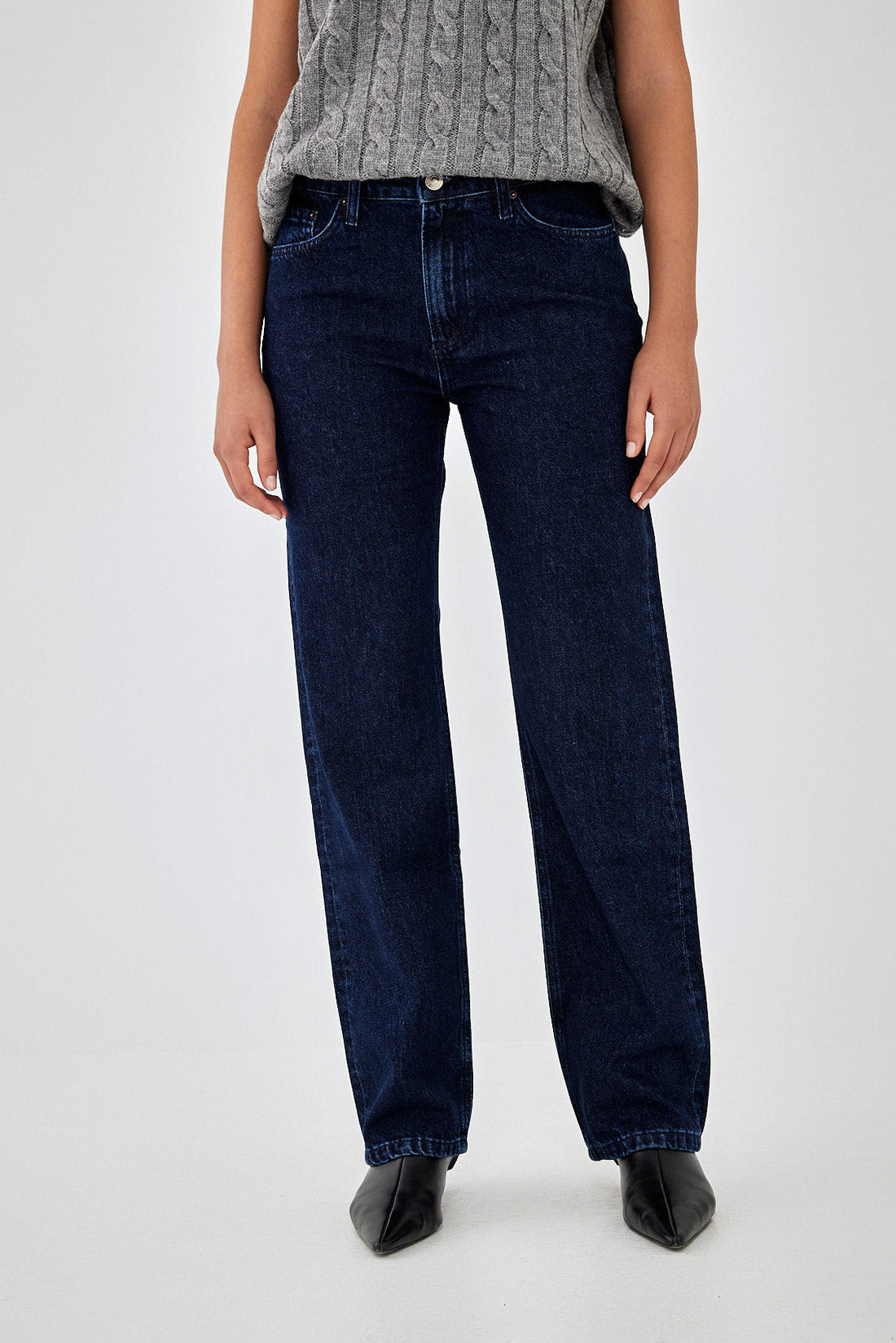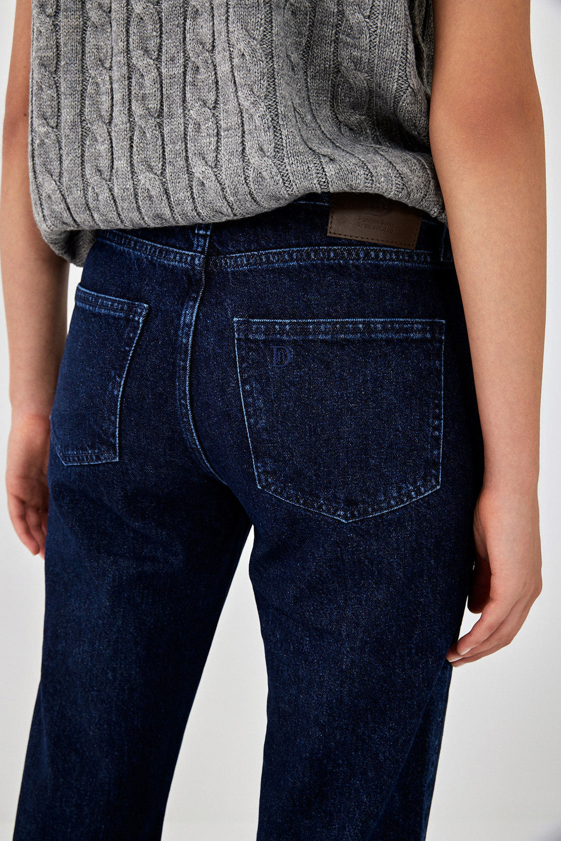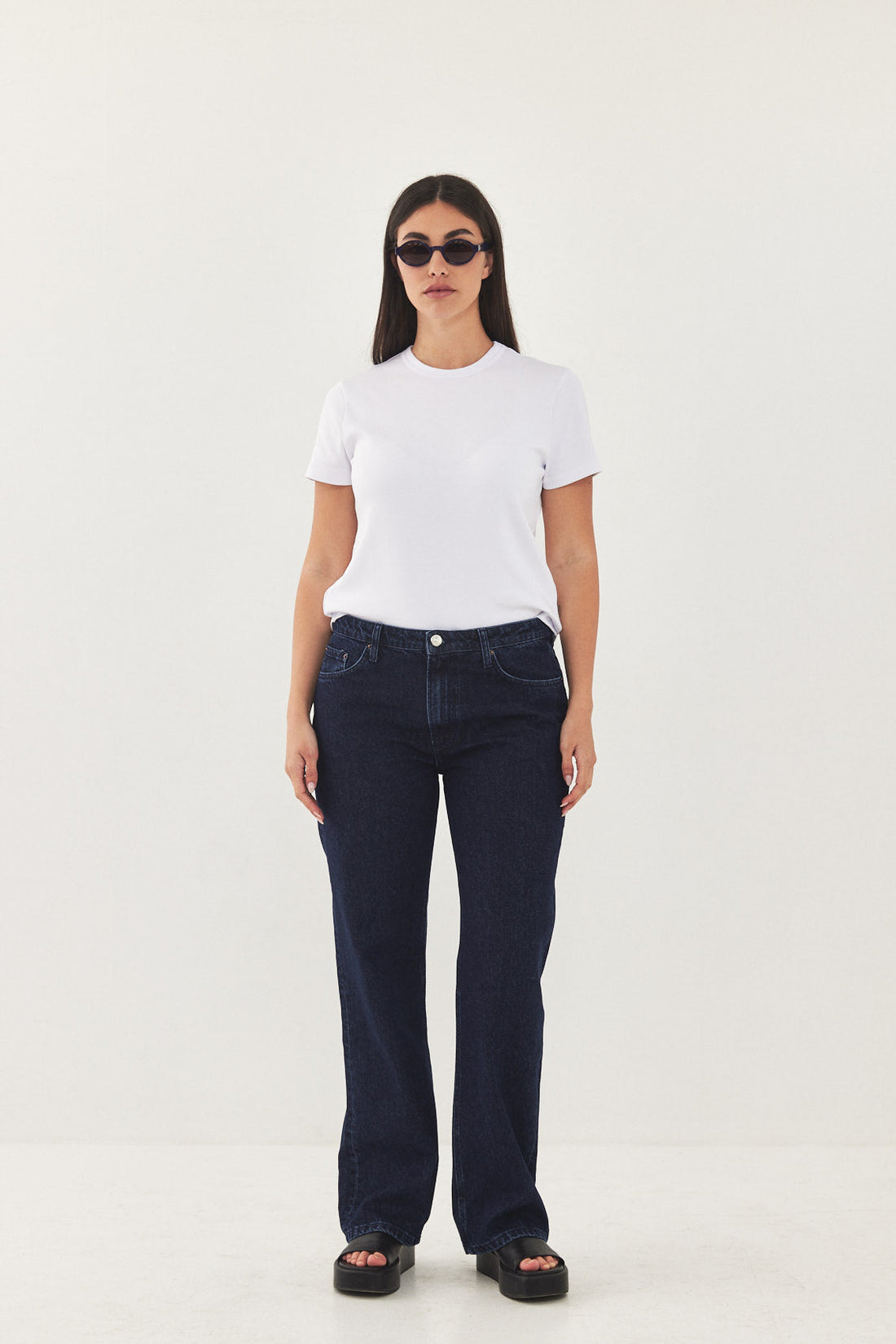 No.10 straight, low-rise, full length fit. Features a zipper closure. Logo detail embroidery on the back patch located above the pocket. Made from 100% thick cotton. Style yours with a basic tank and a pair of sandals or sneakers and the matching oversized denim jacket for a chic everyday look.