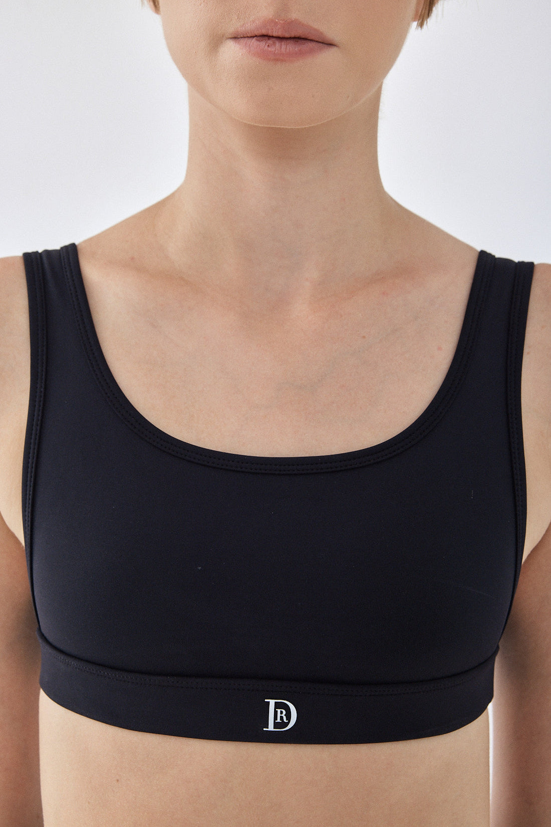 Dé open side bra has a second-skin fit and feel, made from a stretchy supportive fabric. Features dip openings at the sides. Delicate square neckline front and back. Deep Flat lock stitches and an under bust waistband for support. Reflector logo on the front and a fitnéss club signature at the back. Complete the set with one of our matching color fitnéss club bottom.