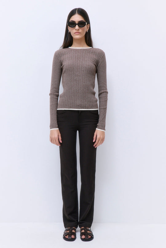 The perfect balance of sleek and effortless ease. Fitted straight leg pants. Front side pockets, featuring a coin pocket. Back pocket. Detailed with tonal De Rococo patch detail. Back yoke. Embroidered tonal logo. Pair it with our new Soft Ribbed Crew Neck and accessorise with our refined Rodika Tote Bag for the ultimate elevated look.