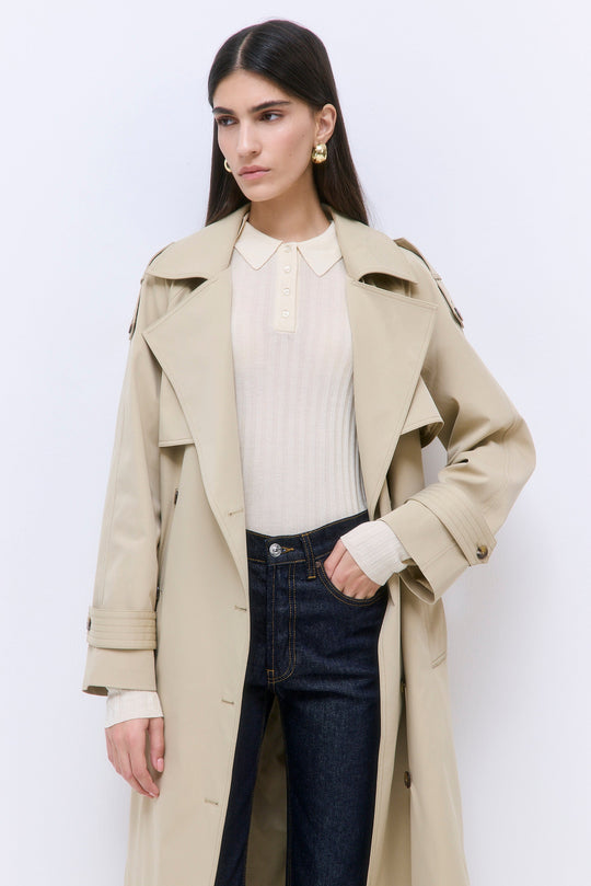 A fresh take on your go-to denim. High waisted, wide leg pants. Full length. Featuring a washed color effect. Double belt loops. Embroidered logo on back pocket. Detailed with a leather patch on back side. Two side pockets. Back pockets. Zipper closure. Completed with a brass logo button. Pair it with our classic Lounge T Shirt and timeless Oval Sunglasses for a transitional, sleek look.