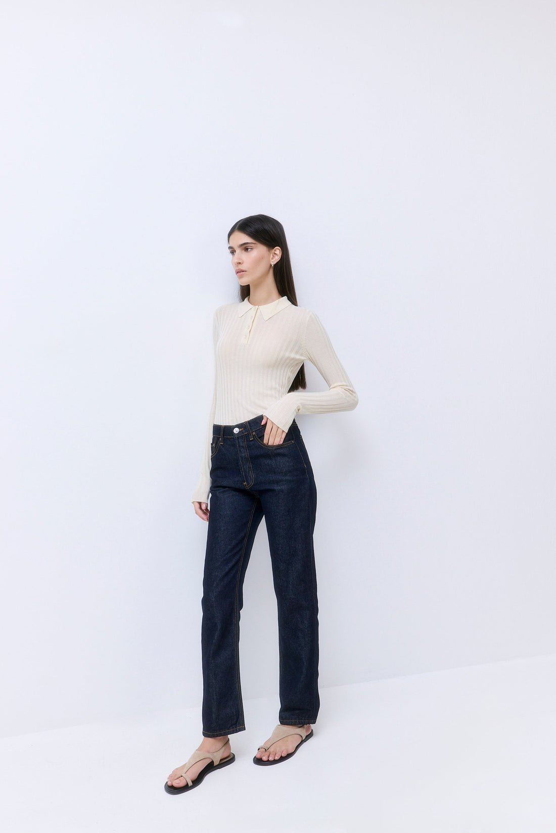 A staple piece for every capsule wardrobe. Polo neckline. Features 4 tonal buttons. Ribbed finish. Slim fit. Full length. Fully fashioned. Clean finishes. Pair it with our stylish Micro Mini Skirt and our sleek Rodika Tote Bag for an everyday effortless look.