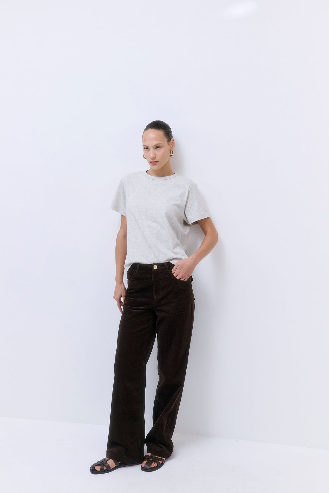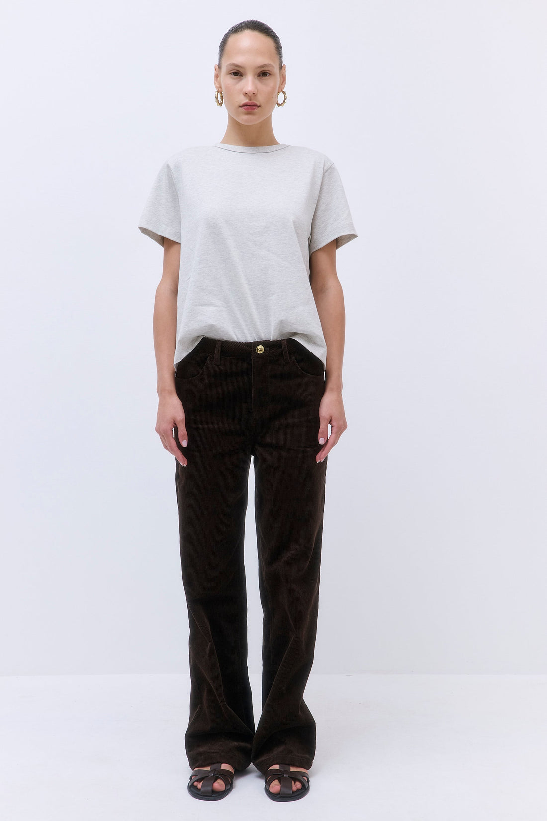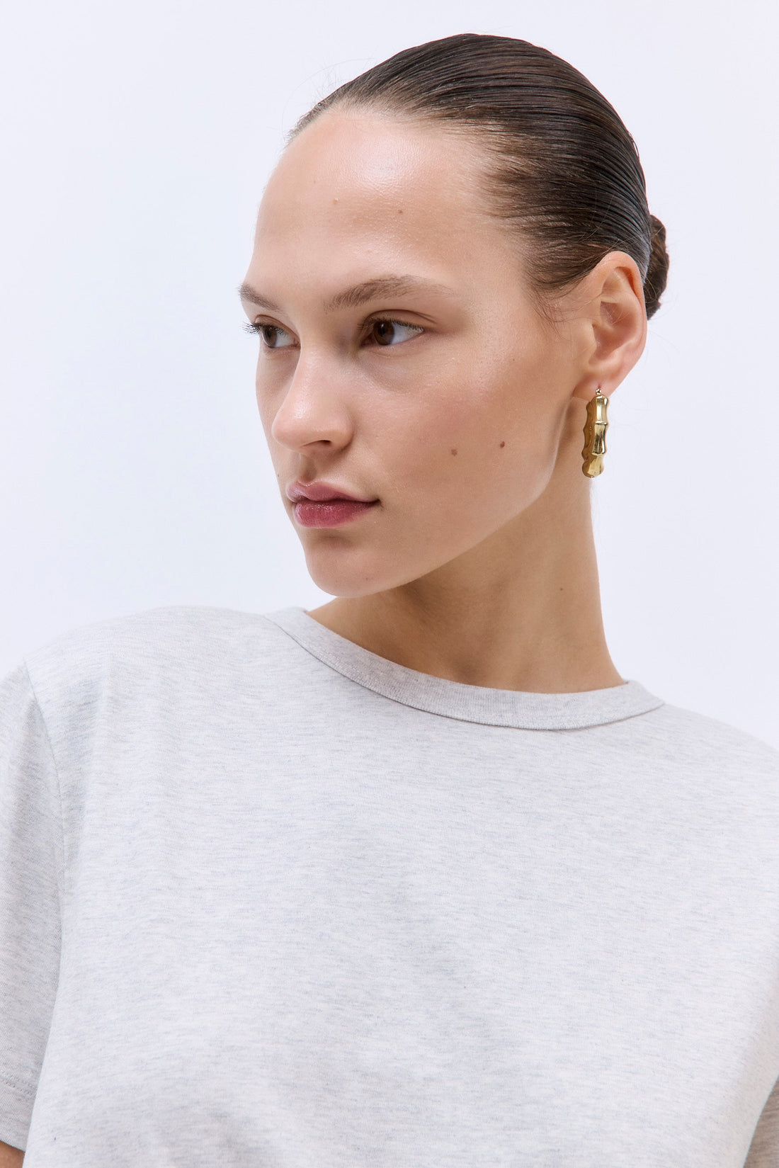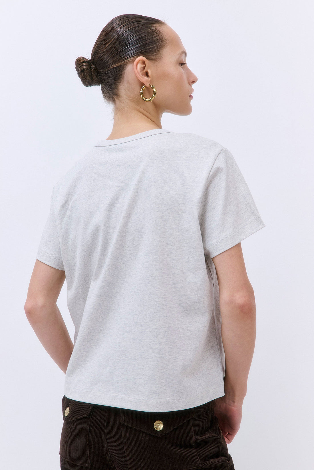 Our Classic Boxy T Shirt is an iconic addition to the basics family. Crafted from crispy cotton. Relaxed, boxy fit. Classic sleeves. Crew neckline with ribbed trim. Tonal embroidered logo at the front. Style it with our capsule Wide Leg Cotton Pants and chic Oval Sunglasses for a refined look.