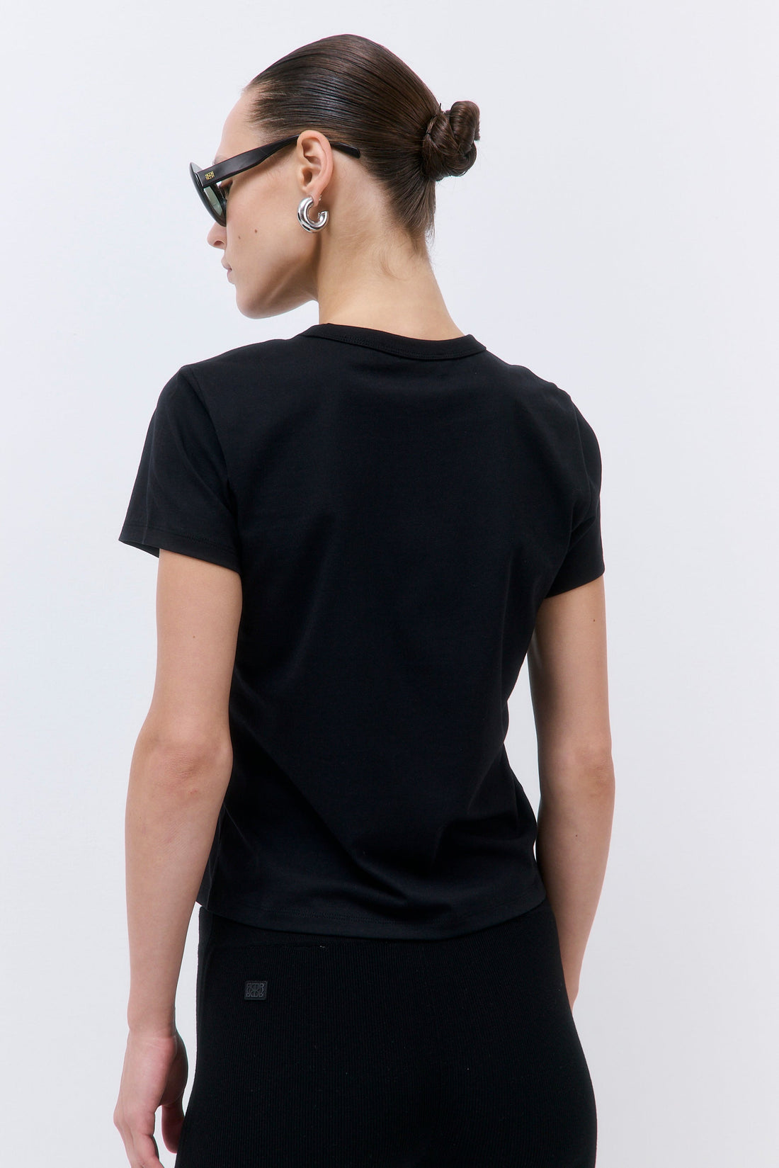 Our Classic Relaxed T-Shirt is the definition of timeless ease. Crafted from crispy cotton. Relaxed fit. Crew neckline with ribbed trim. Cup sleeves. Tonal embroidered logo at the front. Style it with our effortless Low Rise Mini Denim Skirt and elegant Yvon Shoulder Bag for a refined everyday uniform.