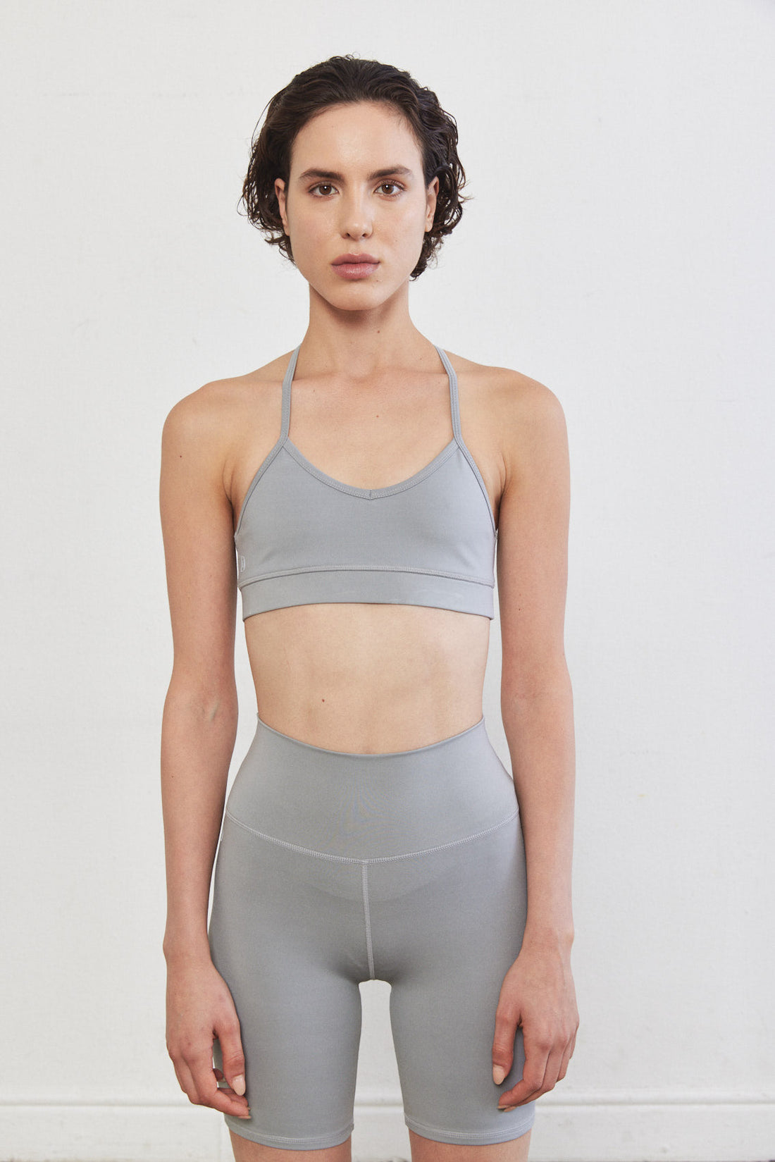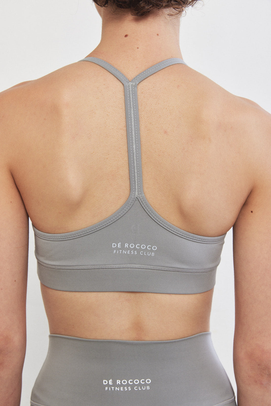Dé strapped back bra has a second-skin fit and feel, made from a stretchy supportive fabric. Features a V neckline with thin straps at the front and one at the back.Flat lock stitches and an under bust waistband for support. Reflector logo on the side front and a fitnéss club signature at the back. Complete the set with one of our matching color fitnéss club bottom.