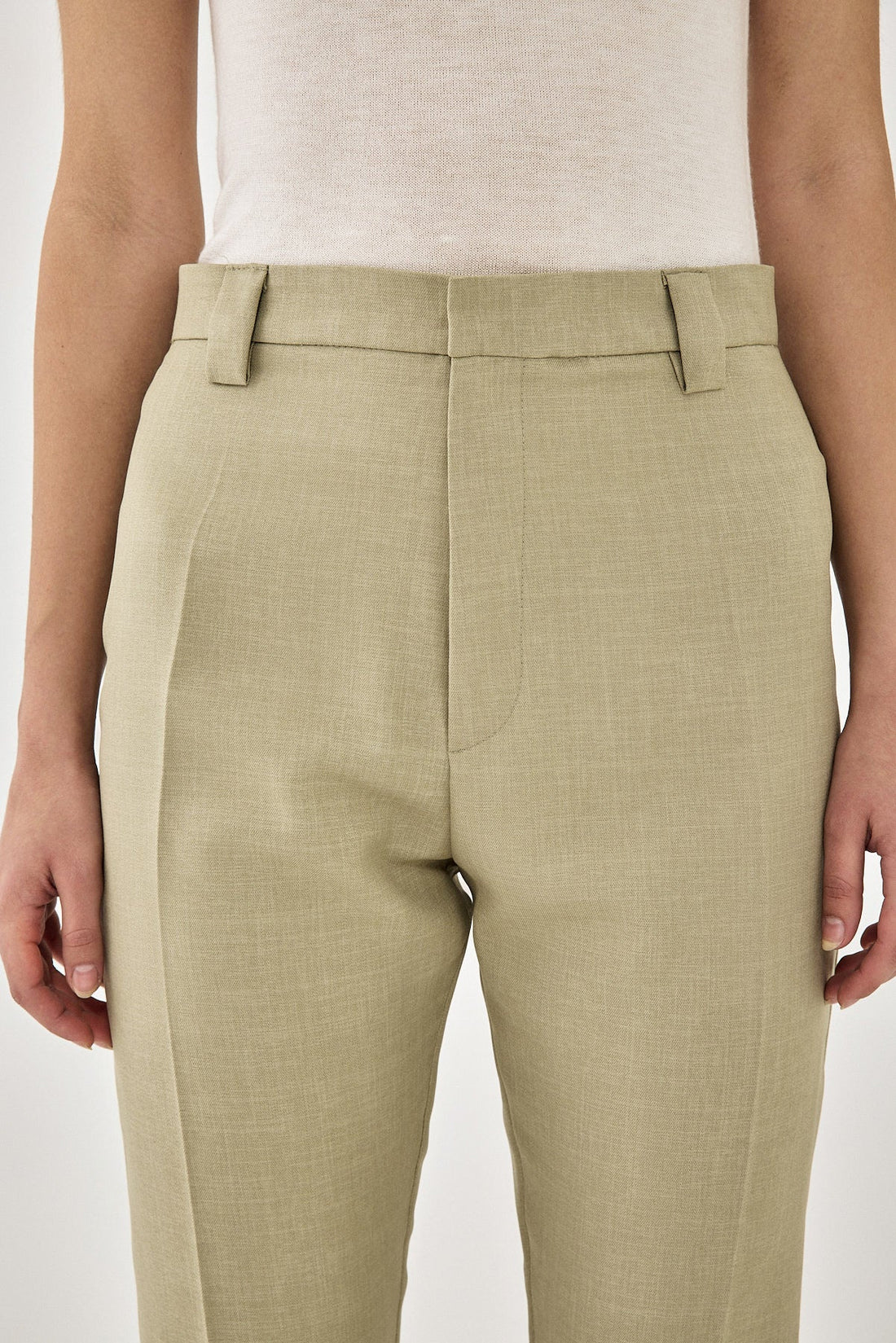 Meet the new addition to our signature daddy collection. High waisted tailored pants with a bootcut silhouette. Full length. Non-stretch lightweight woven fabric. Featuring wide belt loops. Front zip and metal hook closure. Embroidered logo detailing at the back. Style it with the cozy bralette and a blazer on top for the ultimate everyday look.