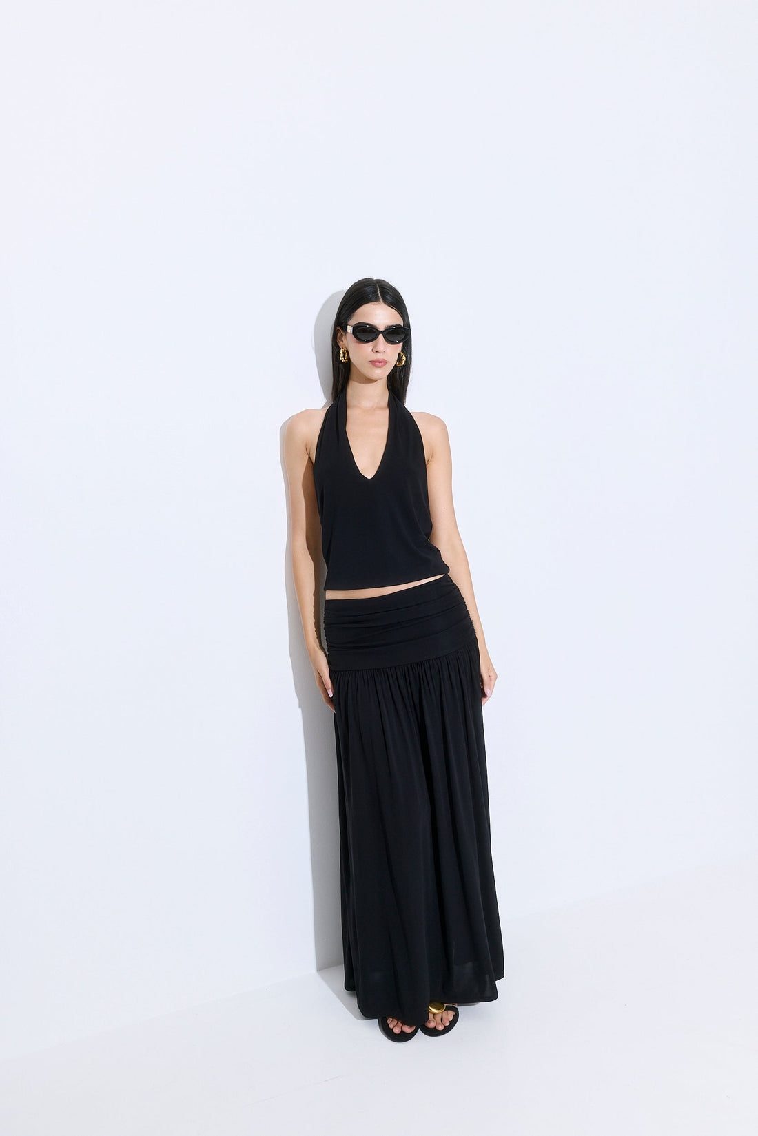 Our new draped jersey maxi skirt was made to elevate every look this summer. Crafted in stretchy and soft fabric that flatters and shapes the body. Gathered detailing at the waist for a flattering silhouette. Maxi-length hemline for a graceful, elongated effect. Slip-on style with a relaxed fit through the skirt. Style it with our classy suede Yvon bag and our oval sunglasses for the pefect da summer outfit.