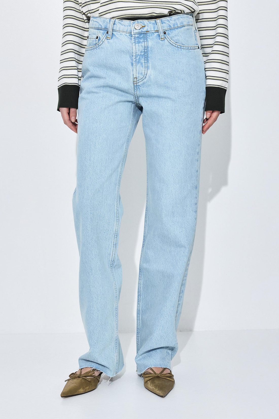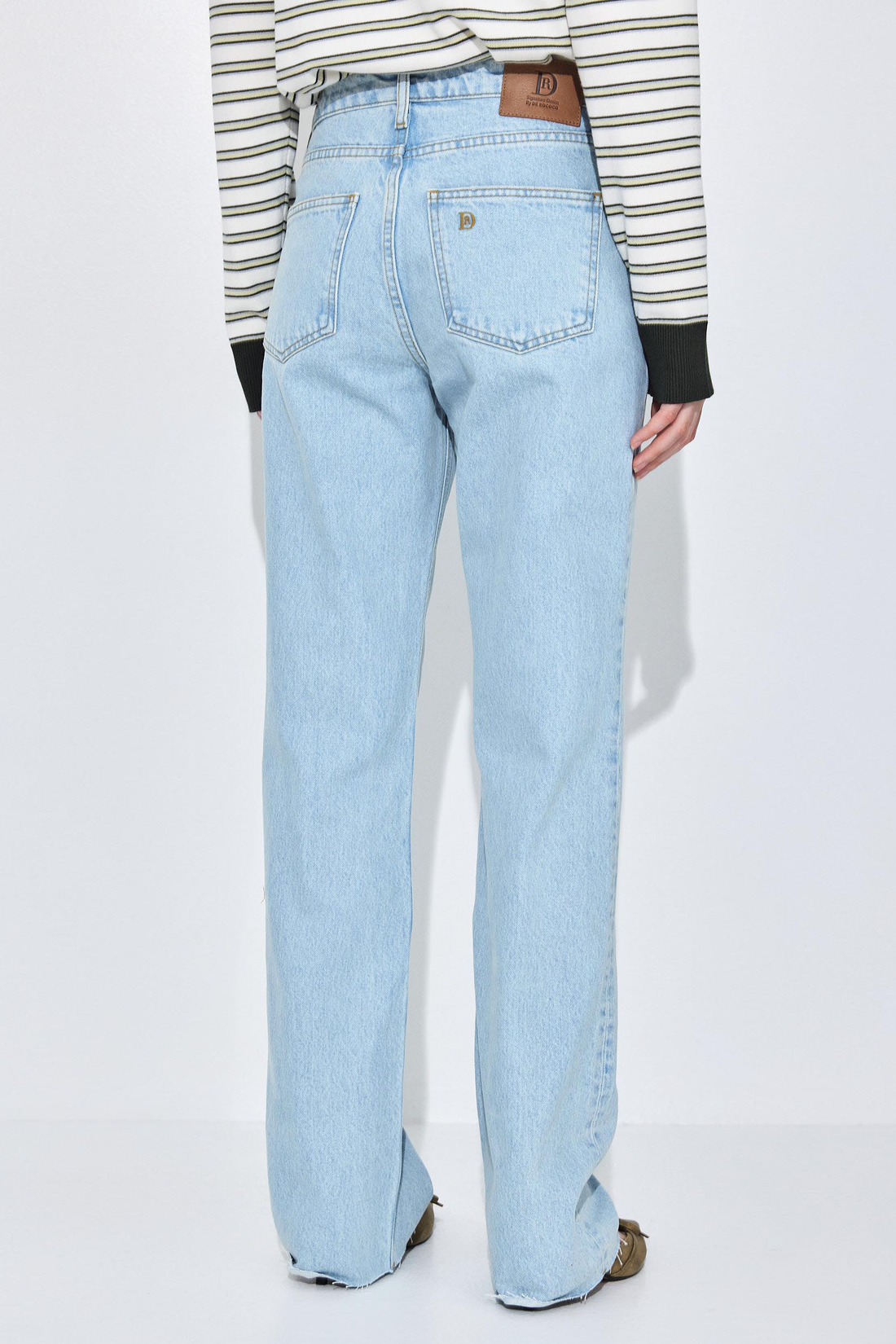 Our No.10 denim is a low-rise straight with a full length. Buttoned closure. Features a logo detail embroidered above the back pocket. Raw cut hemline. The perfect addition to your wardrobe, perfect for all seasons. Style yours with a low cut tank and a pair of slides for the ultimate cool girl look.