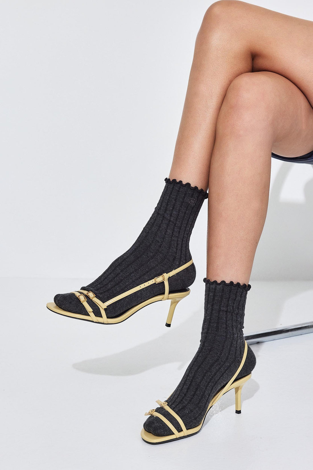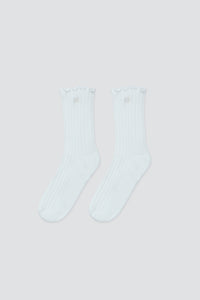 Our new beautiful socks made from 100% cotton. Ultra soft, stretchy and comfy fabric. Ribbed. Micro crew length. Lettuce hem finish. Embroidered tonal logo detailing on the upper part. Style them with the perfect fall outfit for the ultimate chic finish.