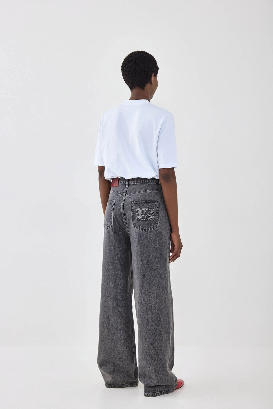 The limited edition version of our No.12 featuring a delicate pop of red. Made from premium 100% rigid cotton. High rise. Super wide fit. Featuring two side pockets. Pleat detailing in the front. Button closure. Full length. Patch print tonal logo detailing at the back pocket. Limited edition red leather patch with debossed logo detailing. Ultra flattering and effortlessly cool. Style it with your favorite summer tank and slides for the perfect everyday look.