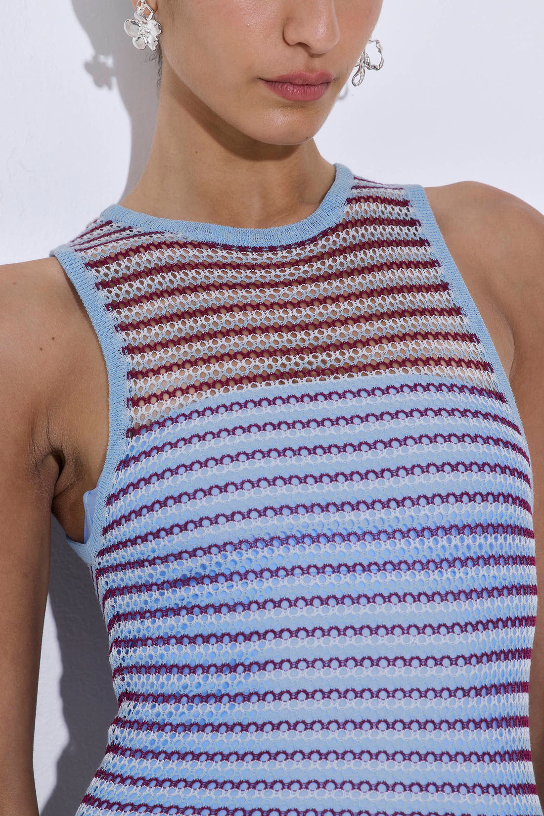 Our crochet tank maxi dress is a true essential this summer days. Made from an open-knit, breathable fabric, it drapes effortlessly over the body, creating a sleek and elongated silhouette. Featuring a sleeveless cut and a round neckline. The ultimate cover up for your swimsuit. Pair it with our Lily one piece and a pair of our beautiful sunnies for an effortless poolside look.