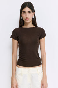 Our fitted wool cup tee is a must having piece from our thin wool collection. Made from ultra-light, breathable wool that regulates temperature and wicks moisture — keeping you cool, dry, and effortlessly chic all season long. Crew neckline. Short angled cut sleeves. Fitted silhouette. Tonal logo embroidered on the side. Clean finish. Style it with our perfect denim mini skirt, our chic scrunchie and finish the look with our timeless Rodika suede tote bag.