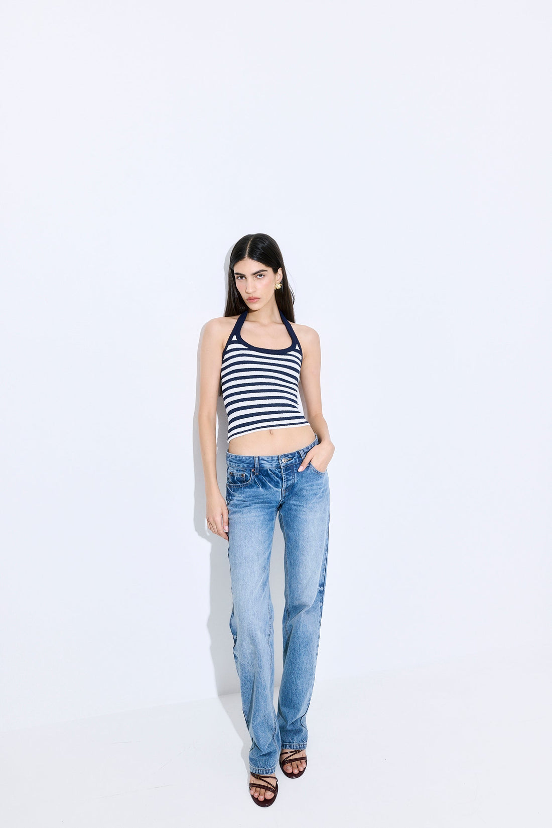 Our new halter neck boucle tank top is your new summer addiction. Made from soft, textured boucle that’s breathable yet structured — offering lightweight warmth, subtle stretch, and all-day comfort with a refined edge. Fitted silhouette. Striped pattern. Tonal silicone logo embossed patch at the back. Style it with our new denim shorts, our oval sunnies and our iconic Yvon shoulder bag for an effortless summer look.