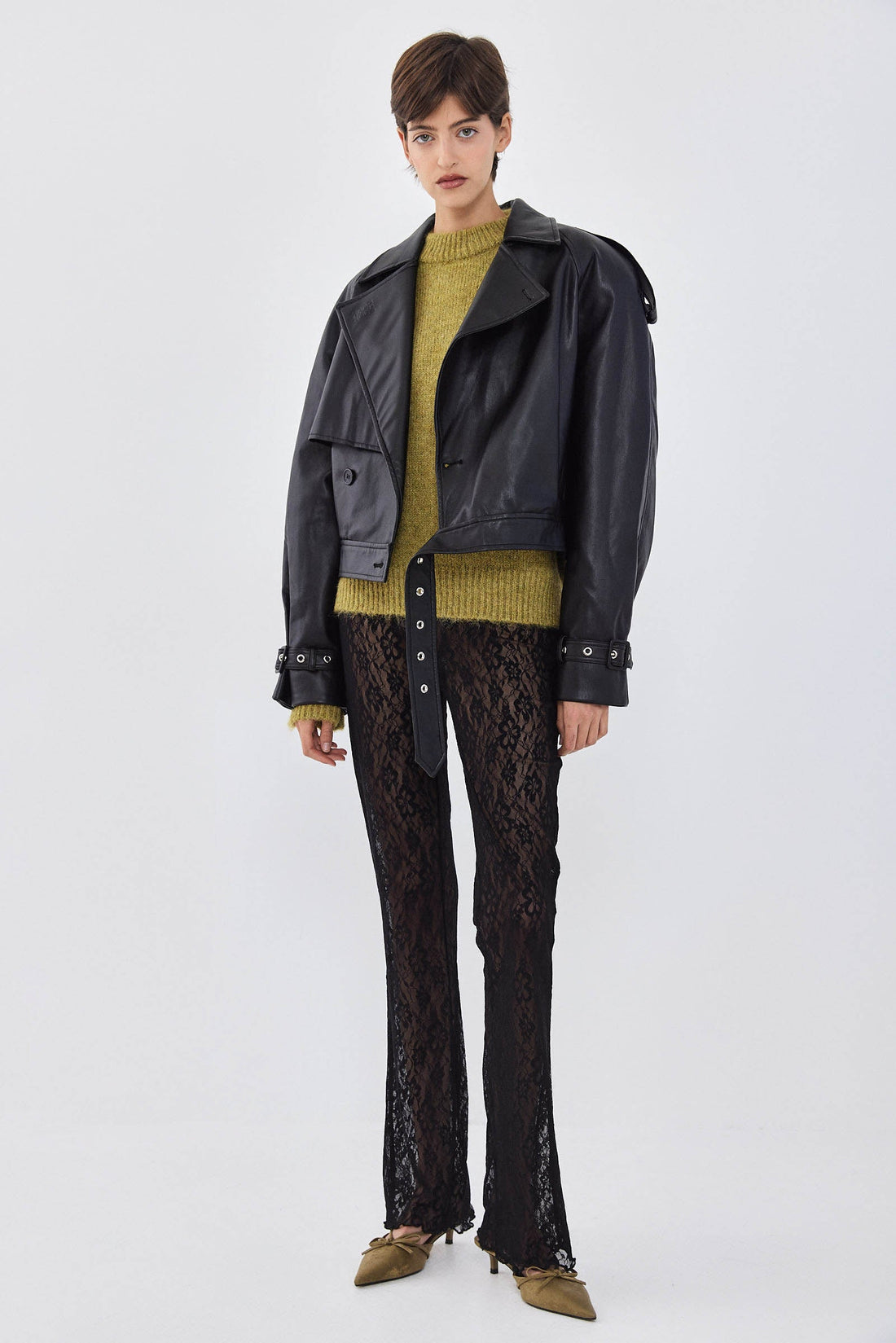 Vegan Leather Cropped Trench Coat