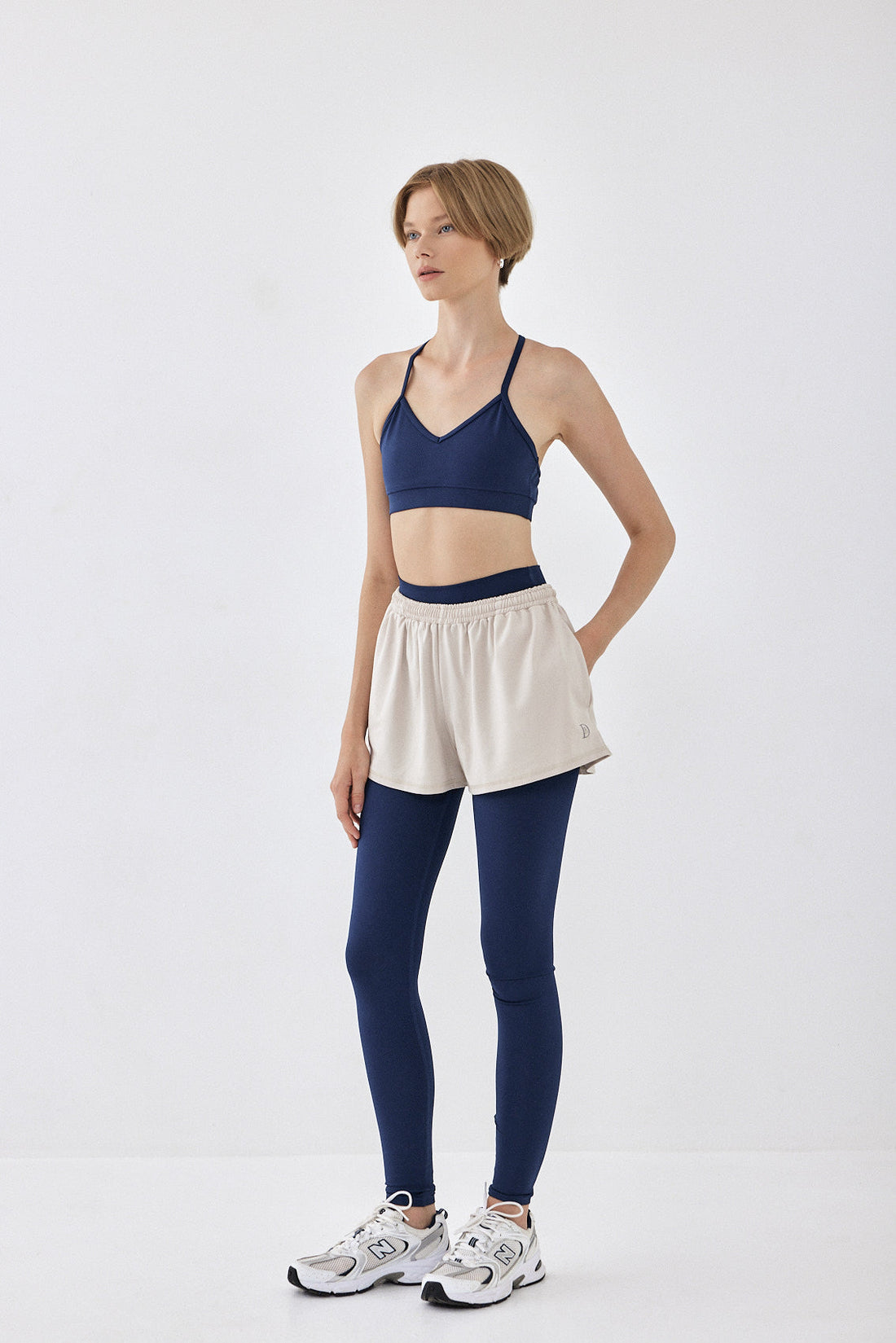 Dé active shorts have a second-skin fit and feel. Elastic waistband with a inner string. Two side pockets. Style it with the matching sleeveless cover up for the perfect casual look.