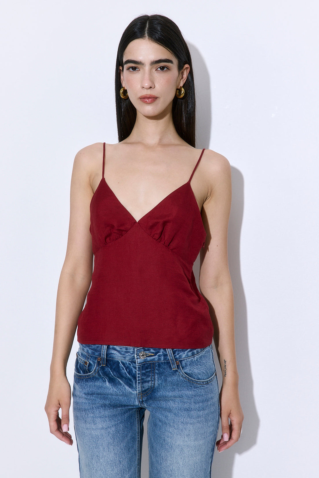 The ultimate warm-weather top. Made from lightweight, breathable linen that feels cool against the skin. Features a gathered neckline and low scoop back with barely-there adjustable straps. Double-lined at the chest for extra coverage. A relaxed, easy silhouette. Pair it with our new linen pants. a pair of our beautiful sunnies and seal this gorgeous look with our signature scrunchie.