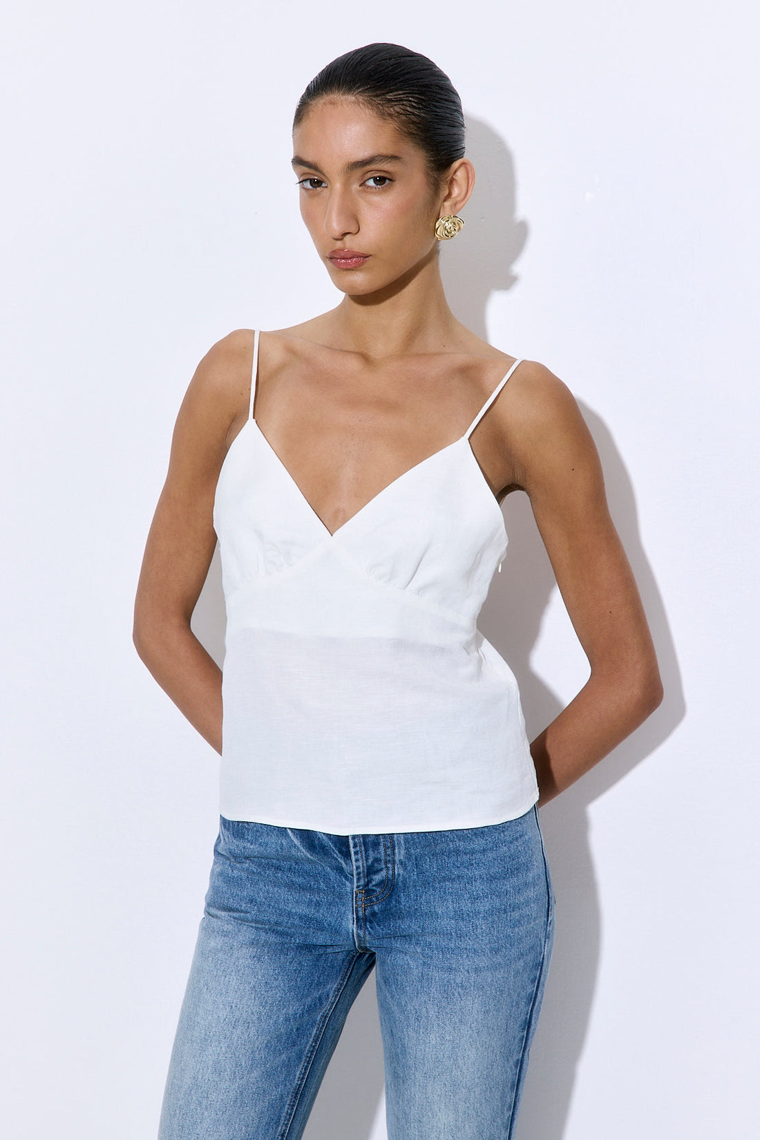 Gathered Neck Linen Camisole