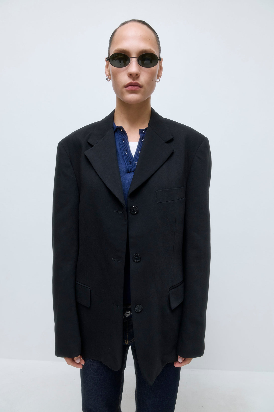 Welcoming new, timeless pieces to our iconic Daddy collection. A classic blazer. Oversized fit. Complete with a lapel collar. Featuring two front flap pockets. Tonal buttons with contrast trim edge. Tonal embroidered logo. Fully lined. Detailed with two inside pockets. Wear it with our new, stylish Slim Daddy Pants and timeless Yvon Shoulder Bag for a refined look.