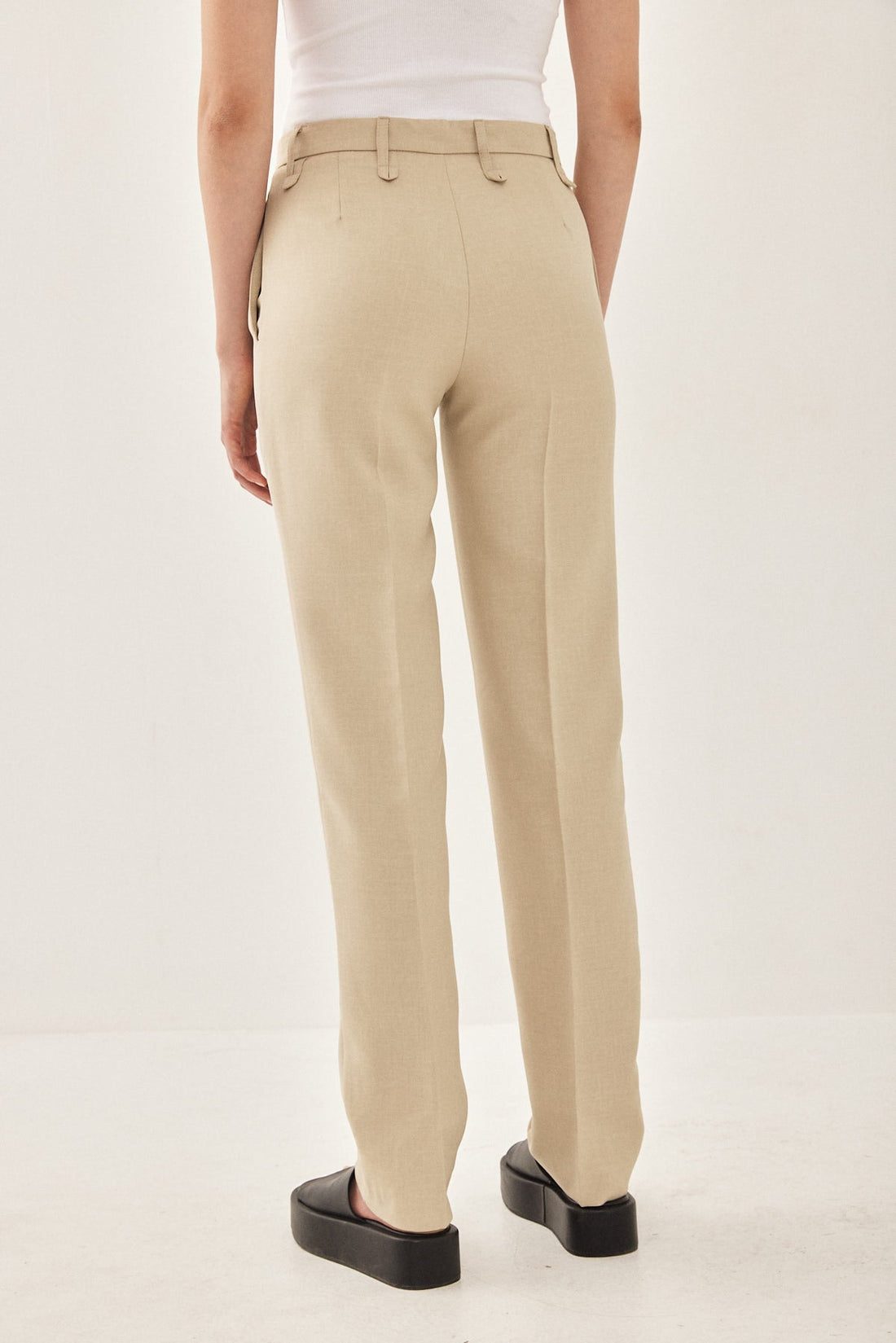 Straight fit mid rise tailored pants. Featuring side pockets, front pleat detail, belt loops and front metal hook and zip closure. Printed logo across inner belt. Wear yours with a basic top and matching Daddy blazer.