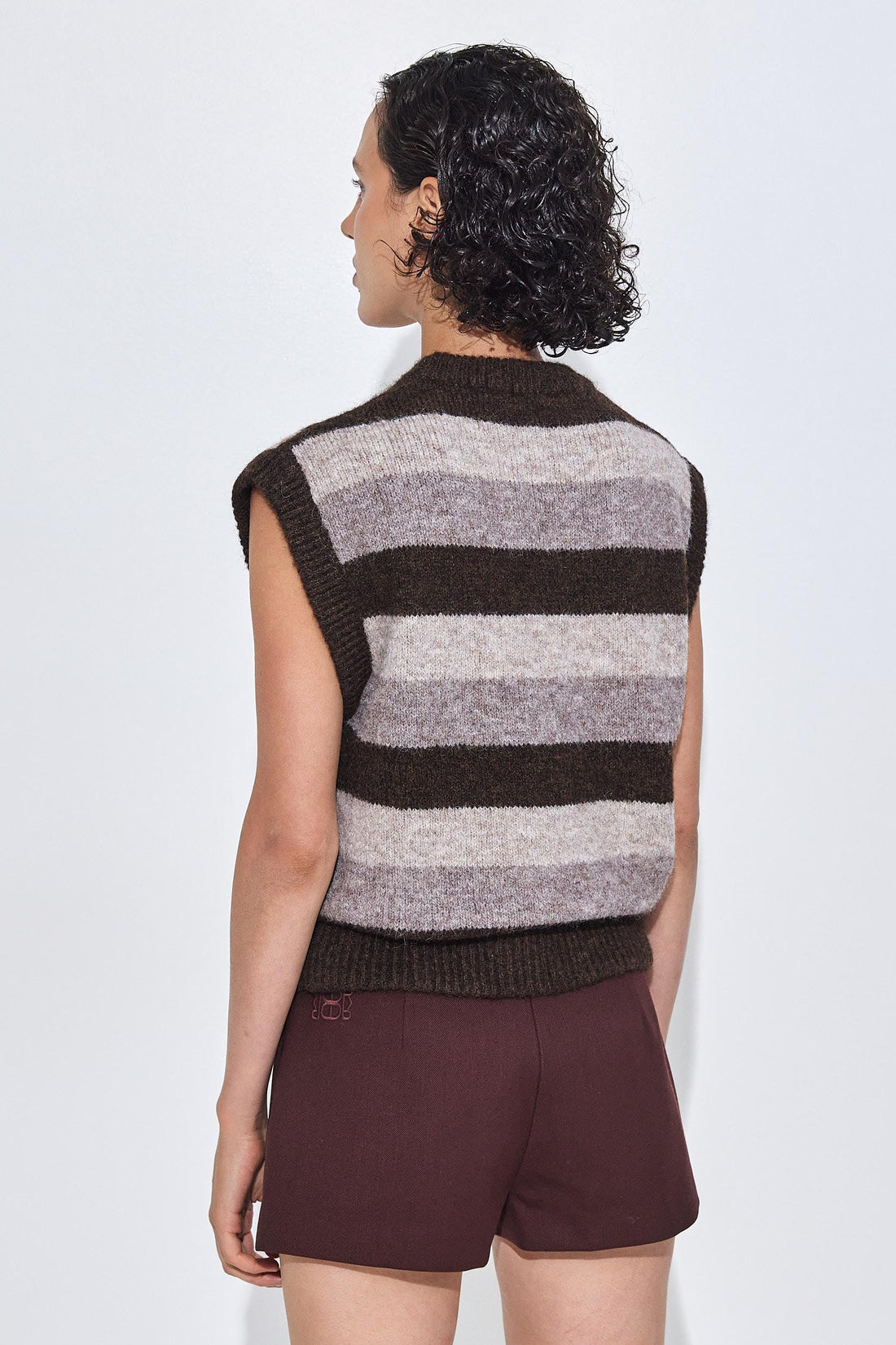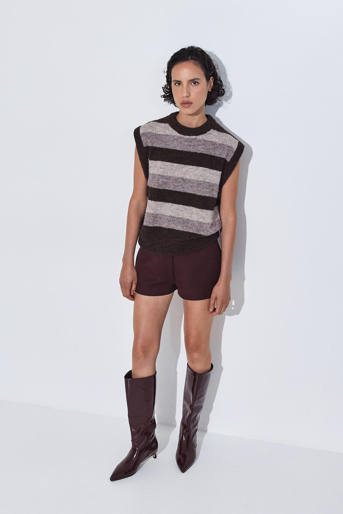 Our new fuzzy vest is the ultimate blend of warmth and style. Relaxed fit. Soft and cozy fabric. Crew neckline. Wide ribbed contrasting finish for additional volume. Style it with a pair of our tailored tapered daddy pants, our signature mini logo belt and throw our tailored daddy blazer on top to seal this classy look.