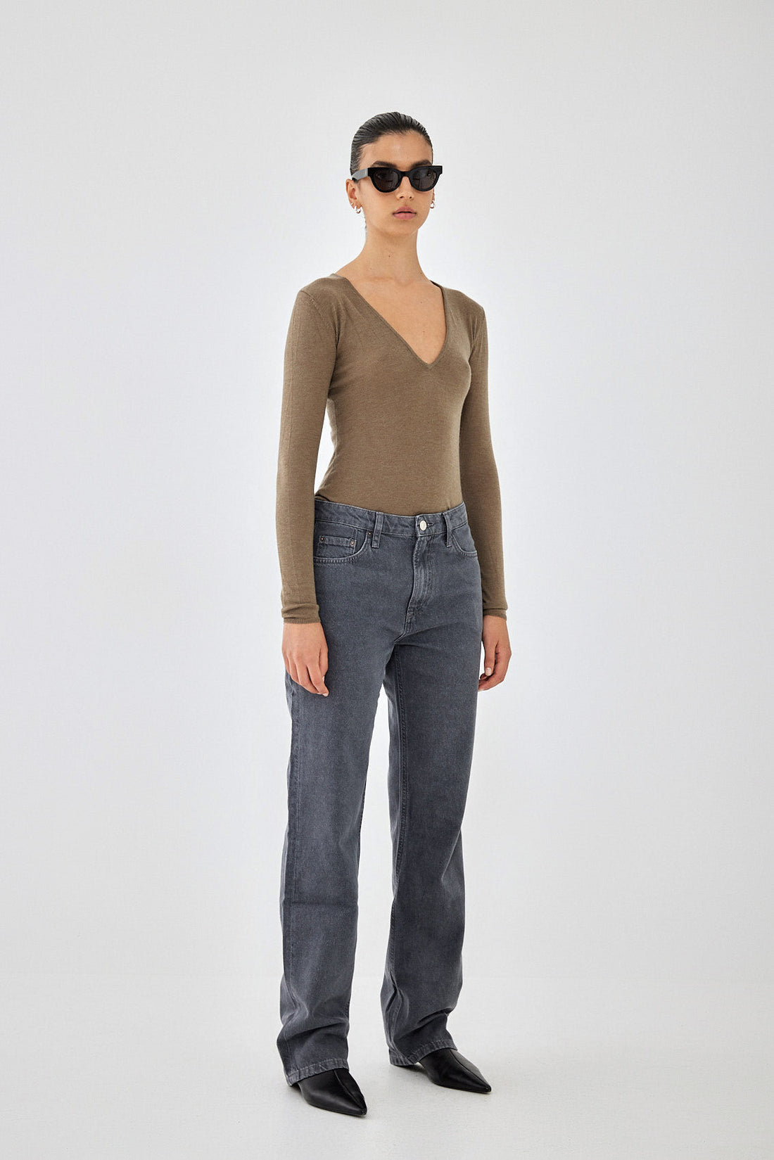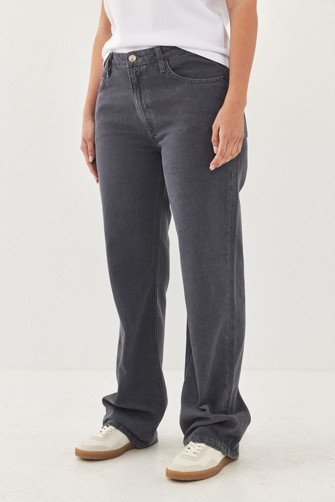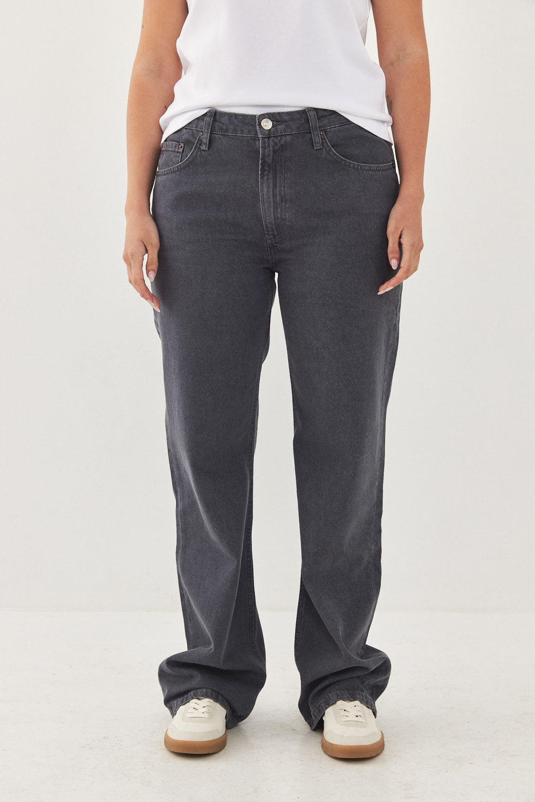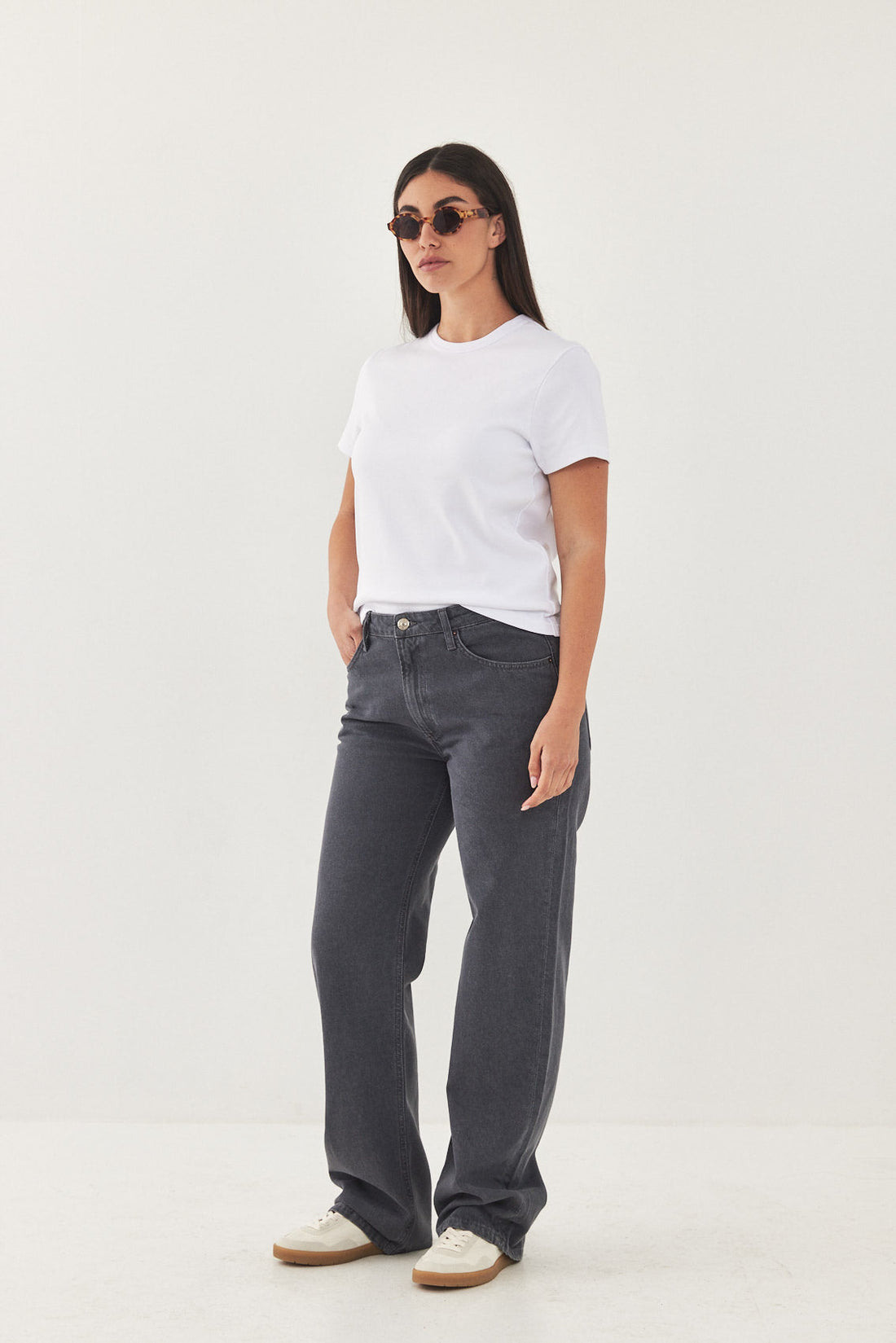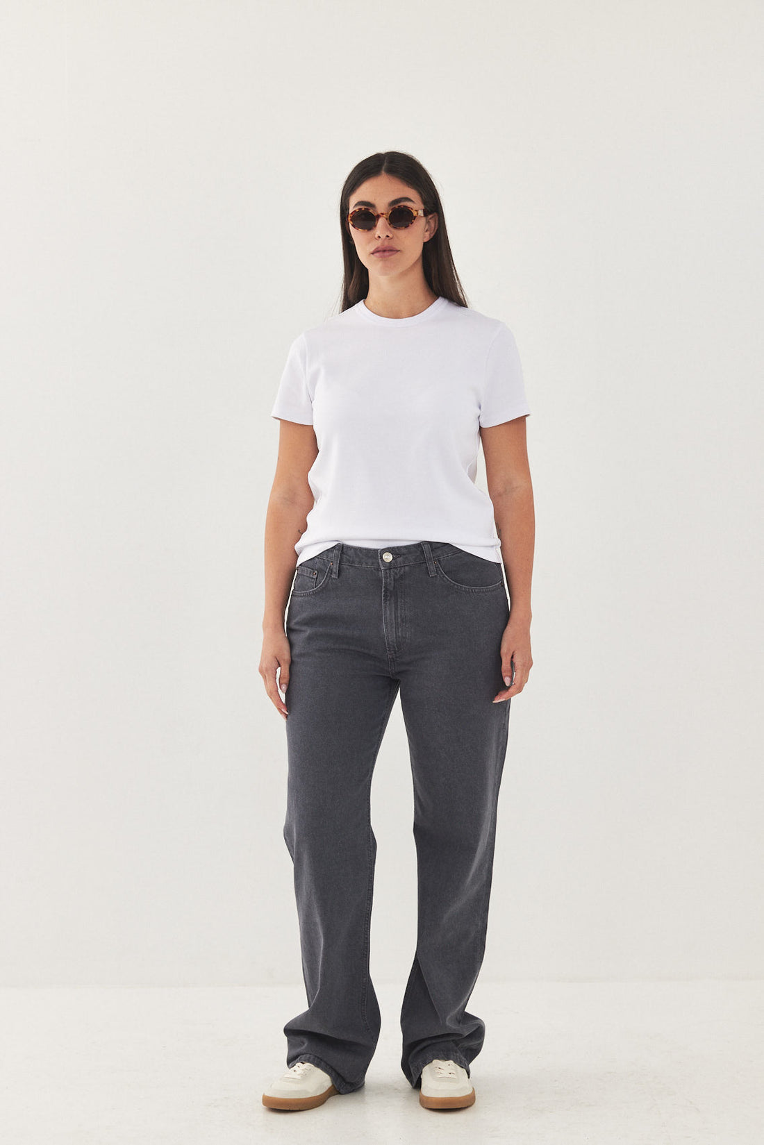 No.10 straight, low-rise, full length fit. Features a zipper closure. Logo detail embroidery on the back patch located above the pocket. Made from 100% thick cotton. Style yours with a basic tank and a pair of sandals or sneakers and the matching oversized denim jacket for a chic everyday look.