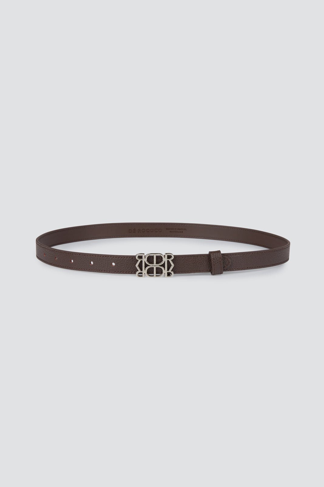 A classic narrow belt with a logo silver buckle. Made from a 100% genuine leather with matte pebble texture. 1.7 cm width. Suitable for high waisted fits. Features belt loop holes for closure at your preferred legnth. Comes in a branded box and a cotton dust bag to keep your accessories safe. The perfect and timeless accessory that completes every look.