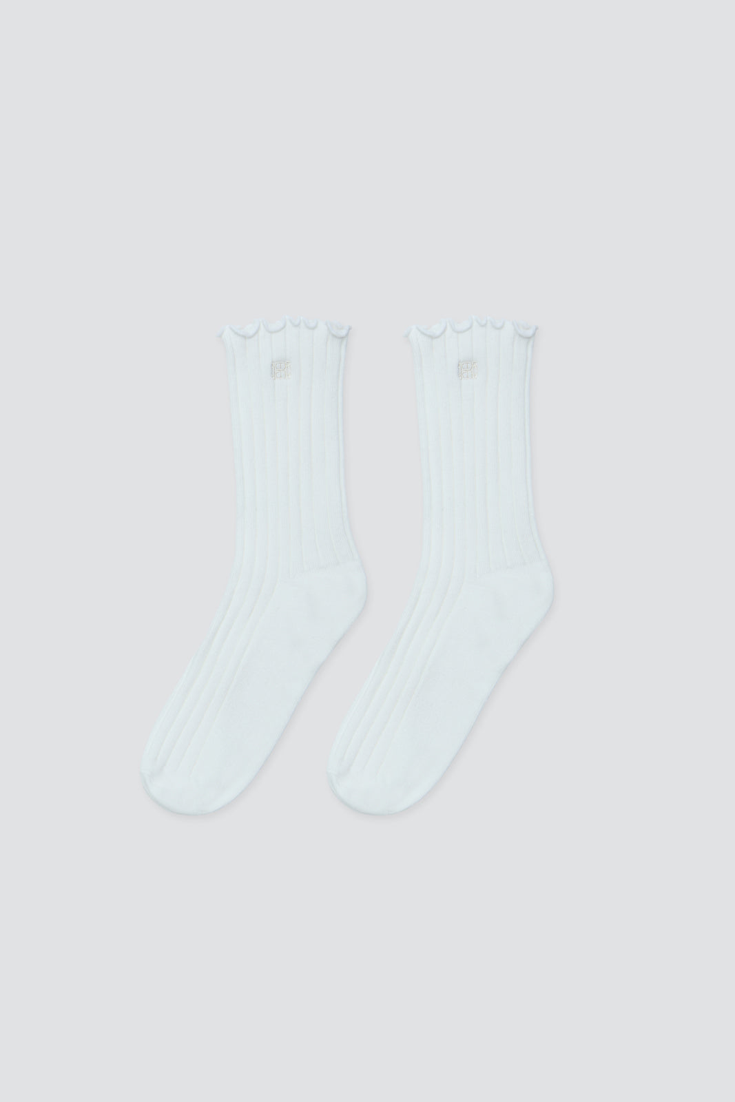 Our new beautiful socks made from 100% cotton. Ultra soft, stretchy and comfy fabric. Ribbed. Micro crew length. Lettuce hem finish. Embroidered tonal logo detailing on the upper part. Style them with the perfect fall outfit for the ultimate chic finish.