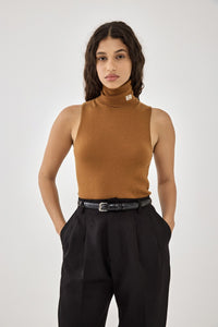 A spring wardrobe essential. Lightweight sleeveless turtleneck. Made from the softest material. Intarsia contrast logo detailing. Style it with your favorite pair of daddy trousers and Croco belt for a sophisticated everyday look.